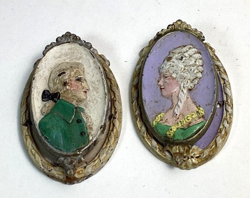 Antique Painted Iron Victorian Man/woman Door Knockers, Pair