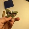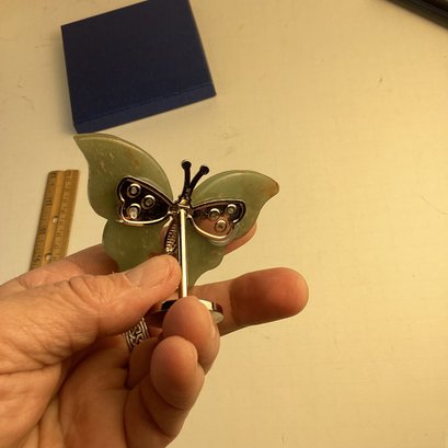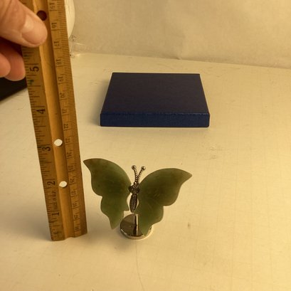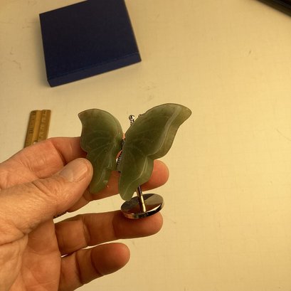 Natural Stone Butterfly Carving, Green Aventurine Wings, Metal Stand