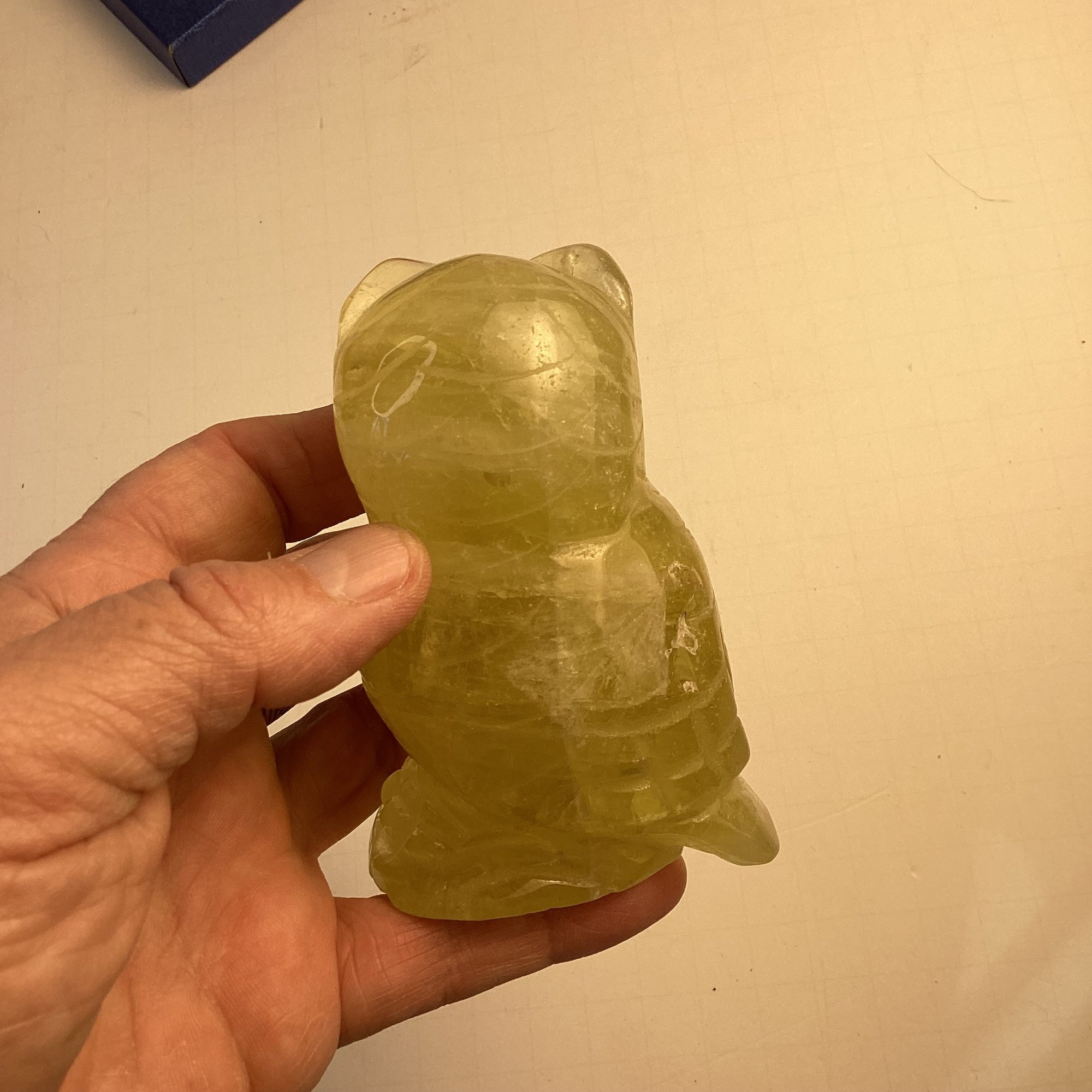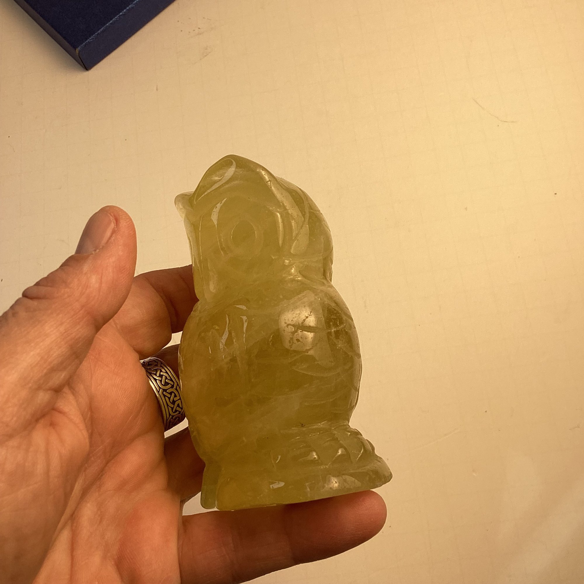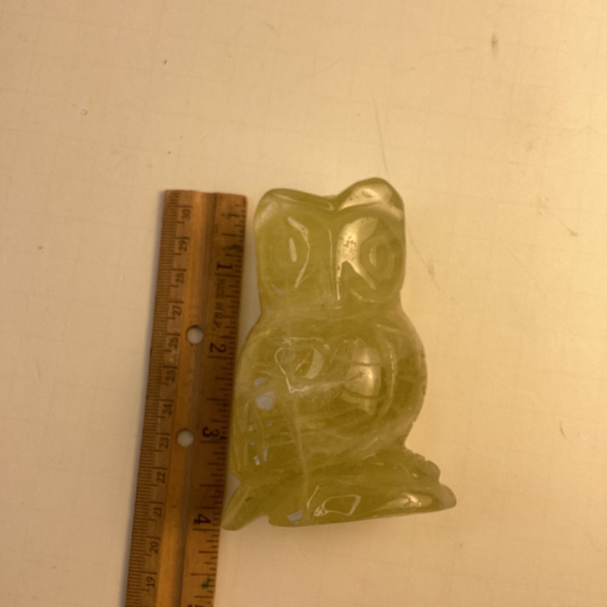 Natural Stone Carving, Solid Yellow Citrine Owl, 4 Inch