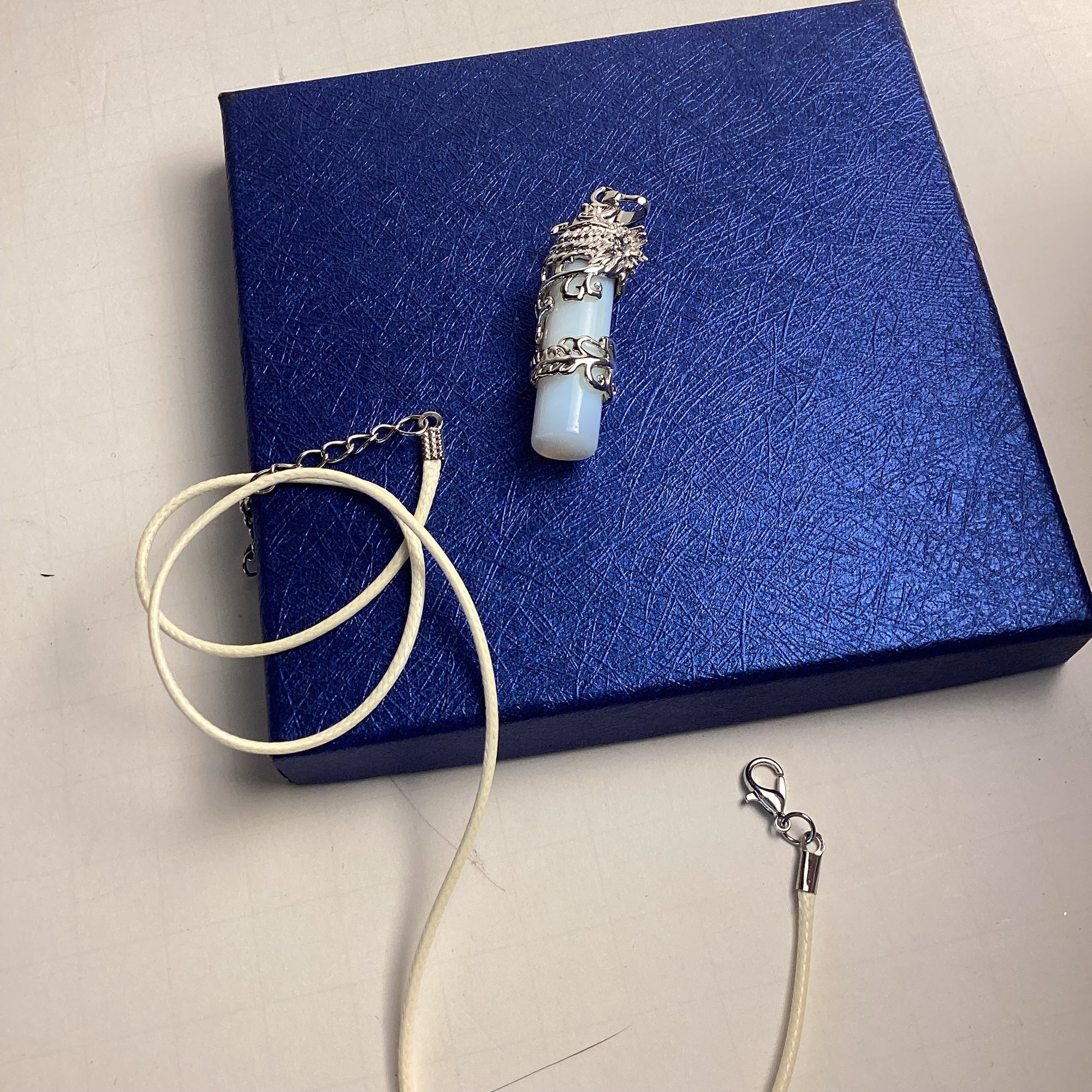 Silver tone metal with genuine stone.