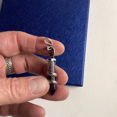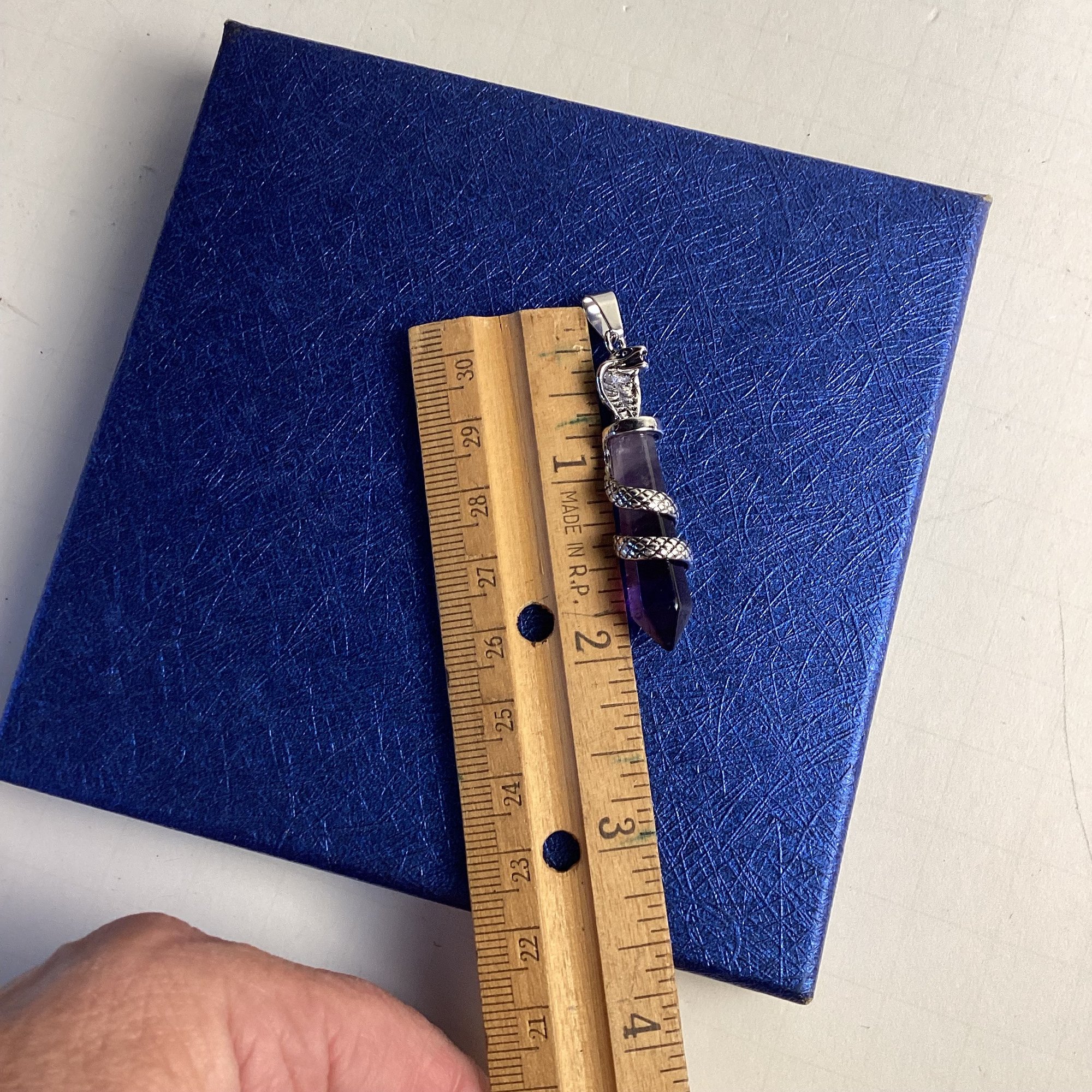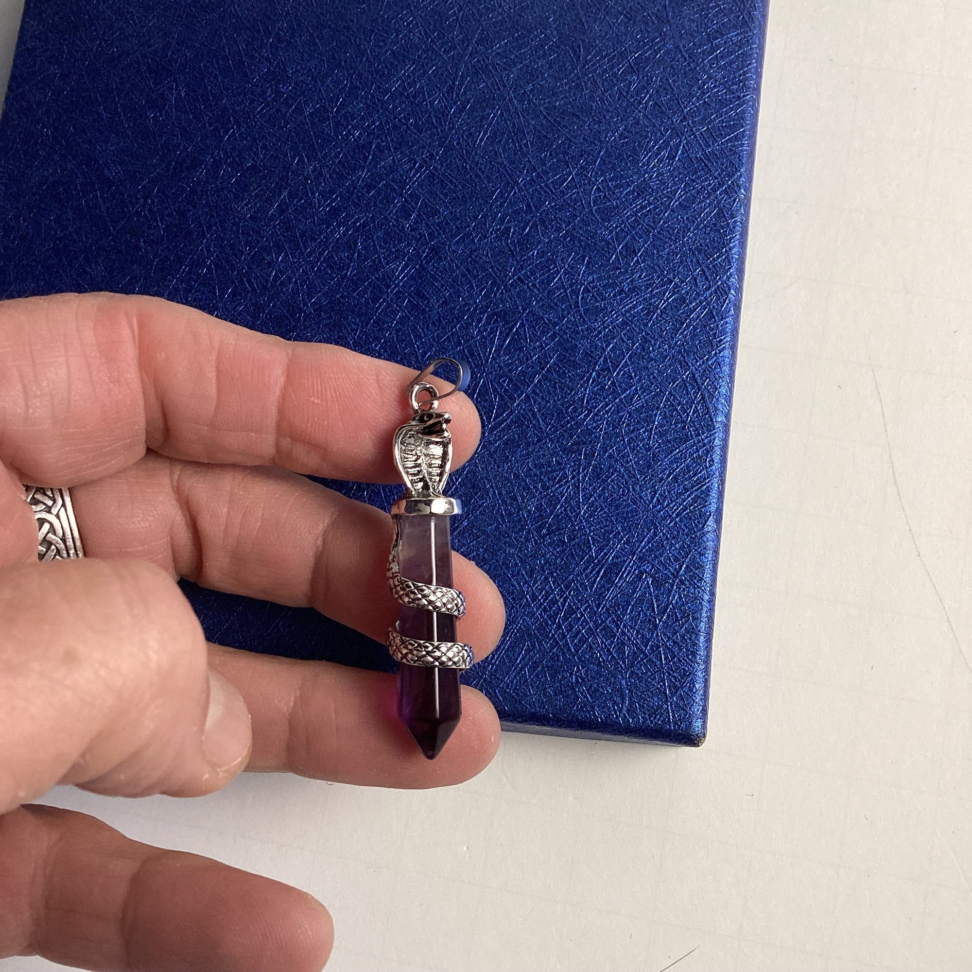 Natural Stone Pendant, LOT 2, Cobra W/ Amethyst Point., Incl. Black Cord
