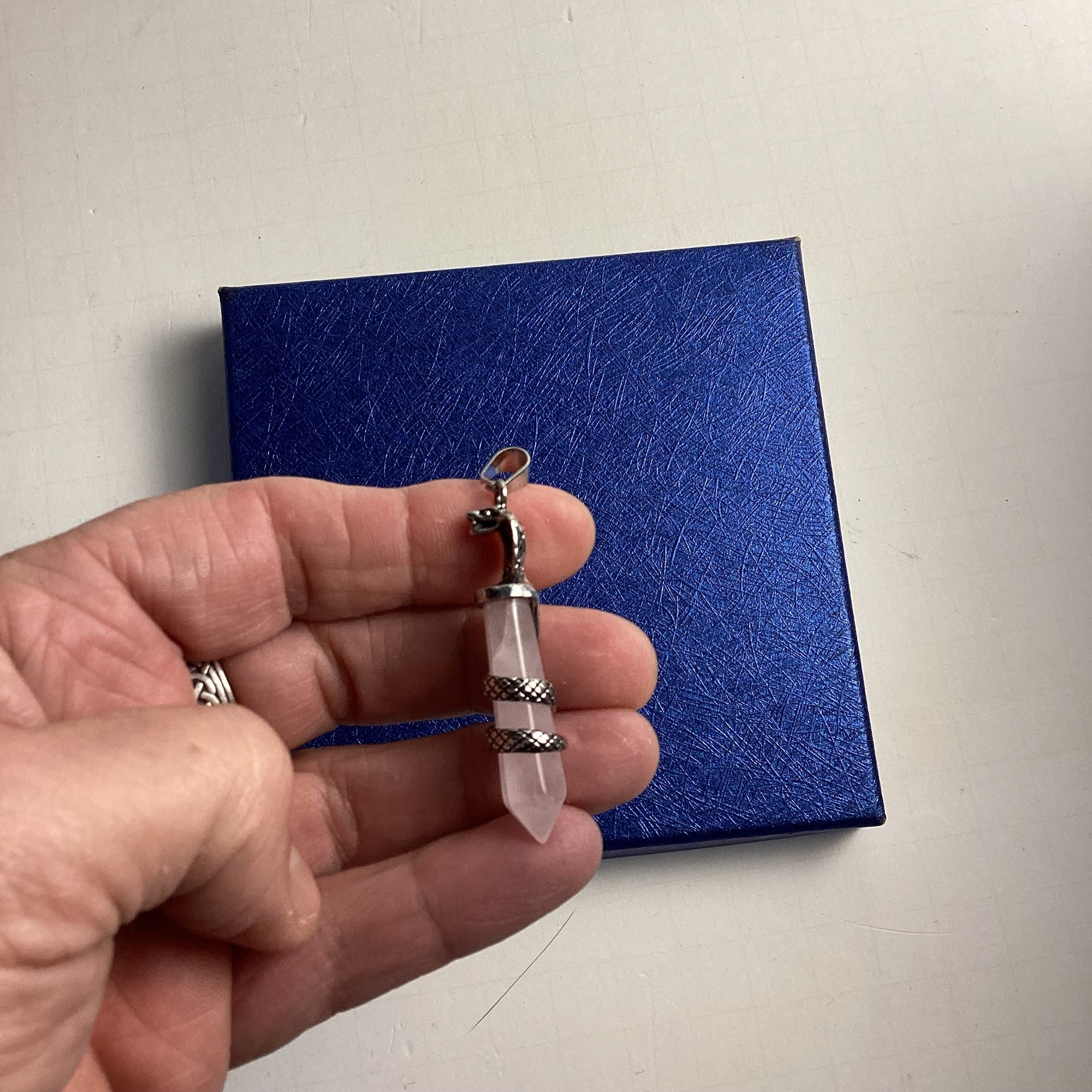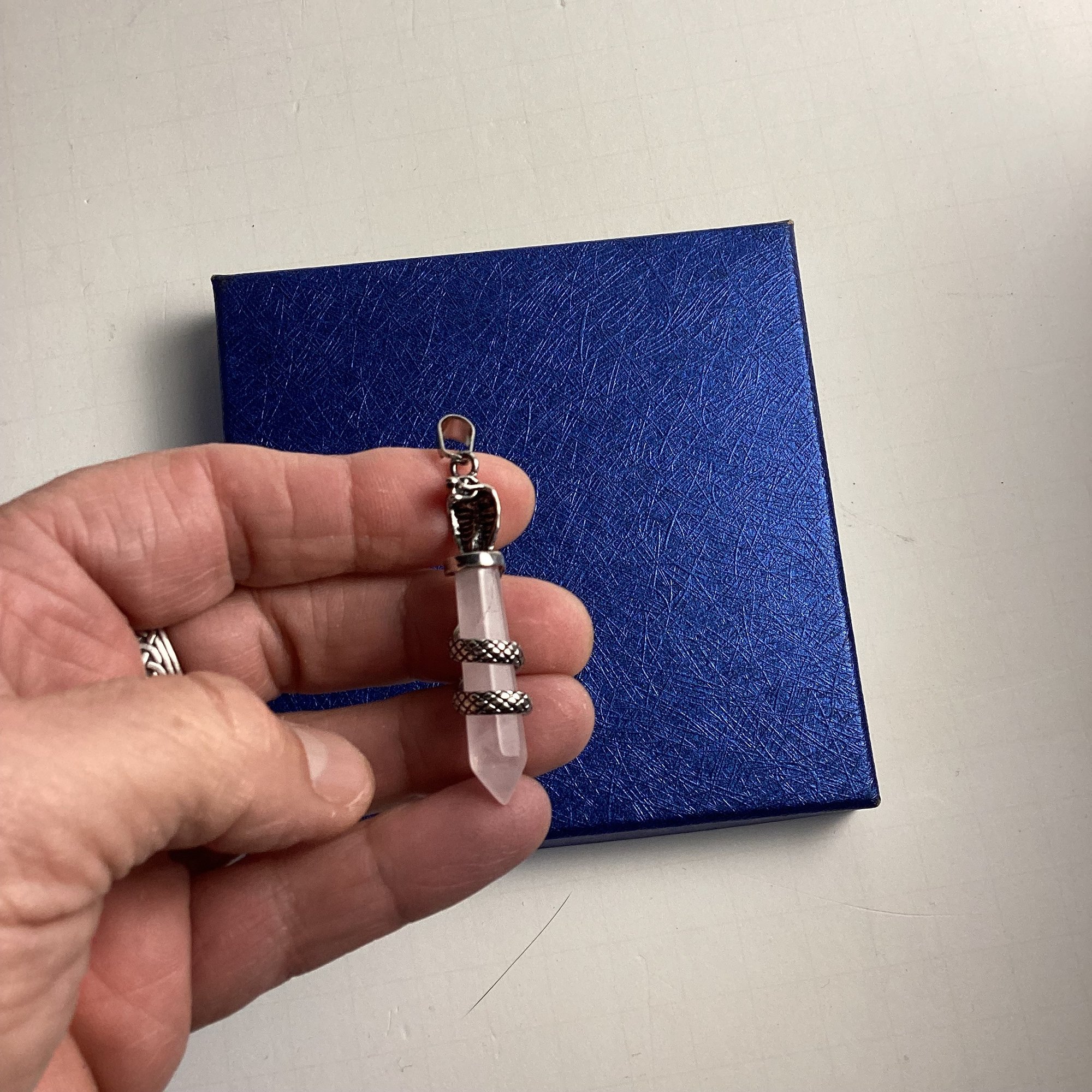 Natural Stone Pendant, LOT 3, Cobra W/ Rose Quartz Point, W/ Black Cord