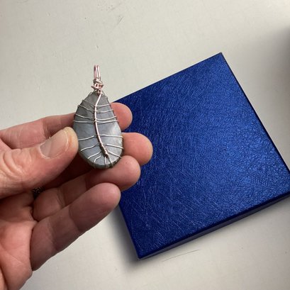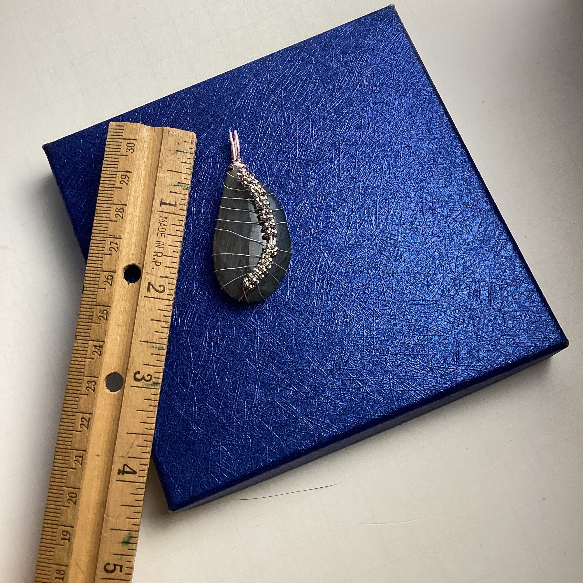 Natural Stone Pendant, LOT 9, Wire Wrapped Labradorite, W/ Black Cord