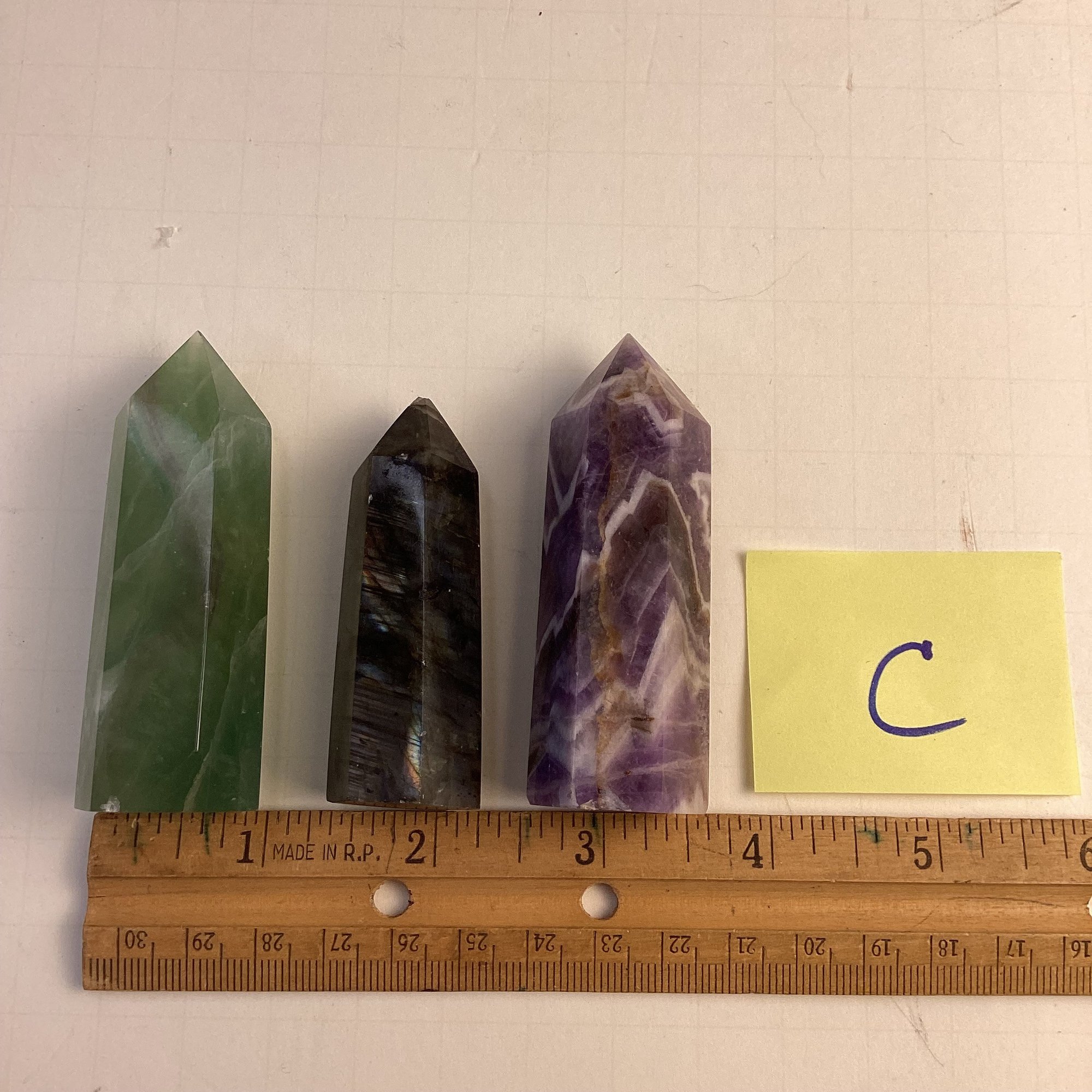 Natural Stone Point Assortment (3), LOT C, Amethyst, Fluorite, Labradorite