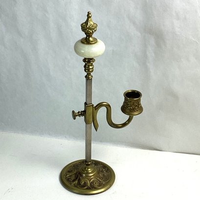 Beautiful Brass And Onyx Sliding Tabletop Candle Stick, 12 Inches