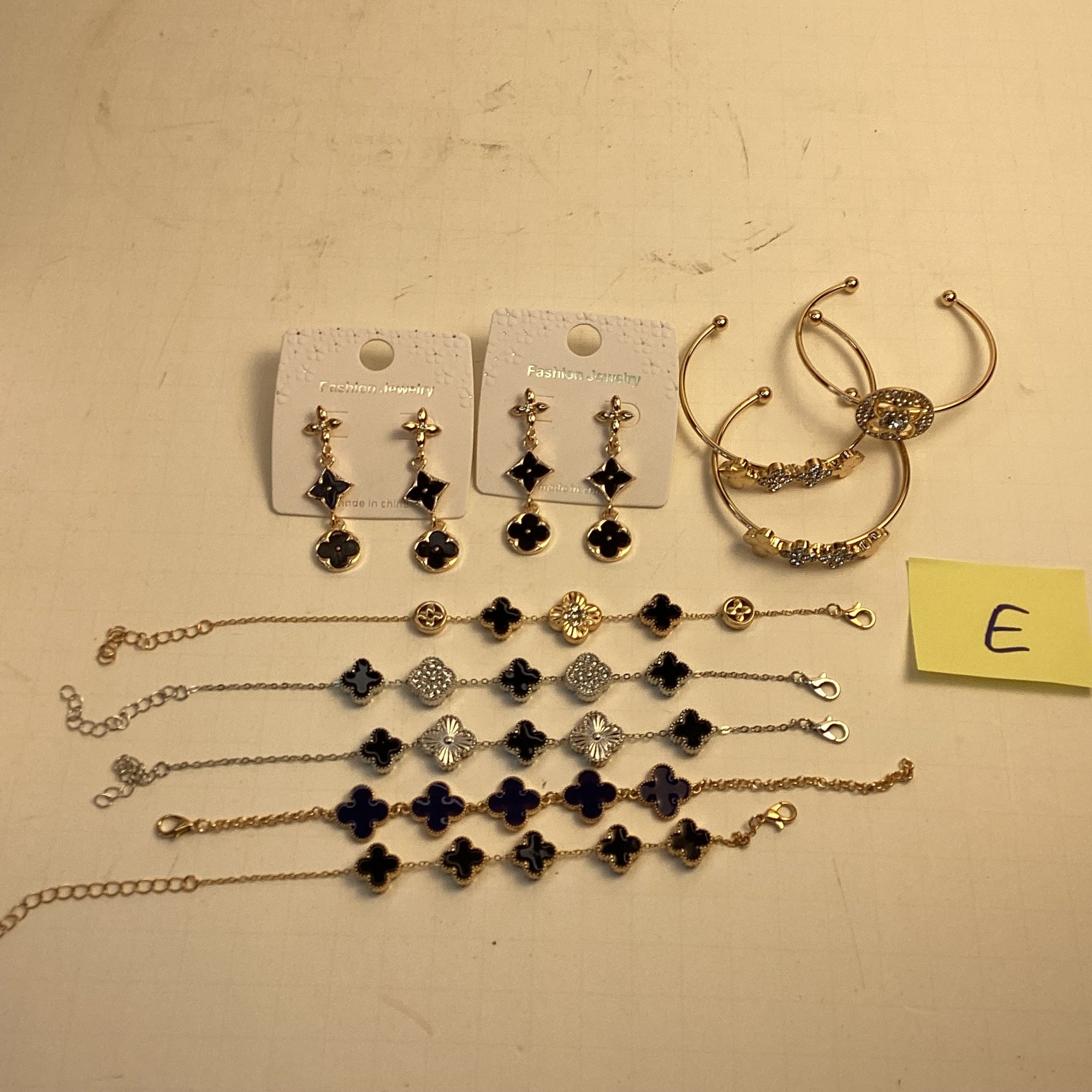 Costume Jewelry, LOT E, Clover Bracelets, Pierced Earrings, Brand New