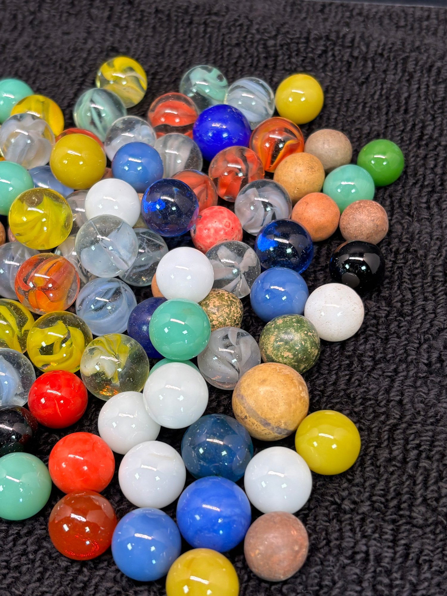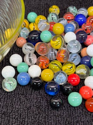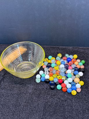 Depression Glass Bowl With Vintage And Antique Marbles