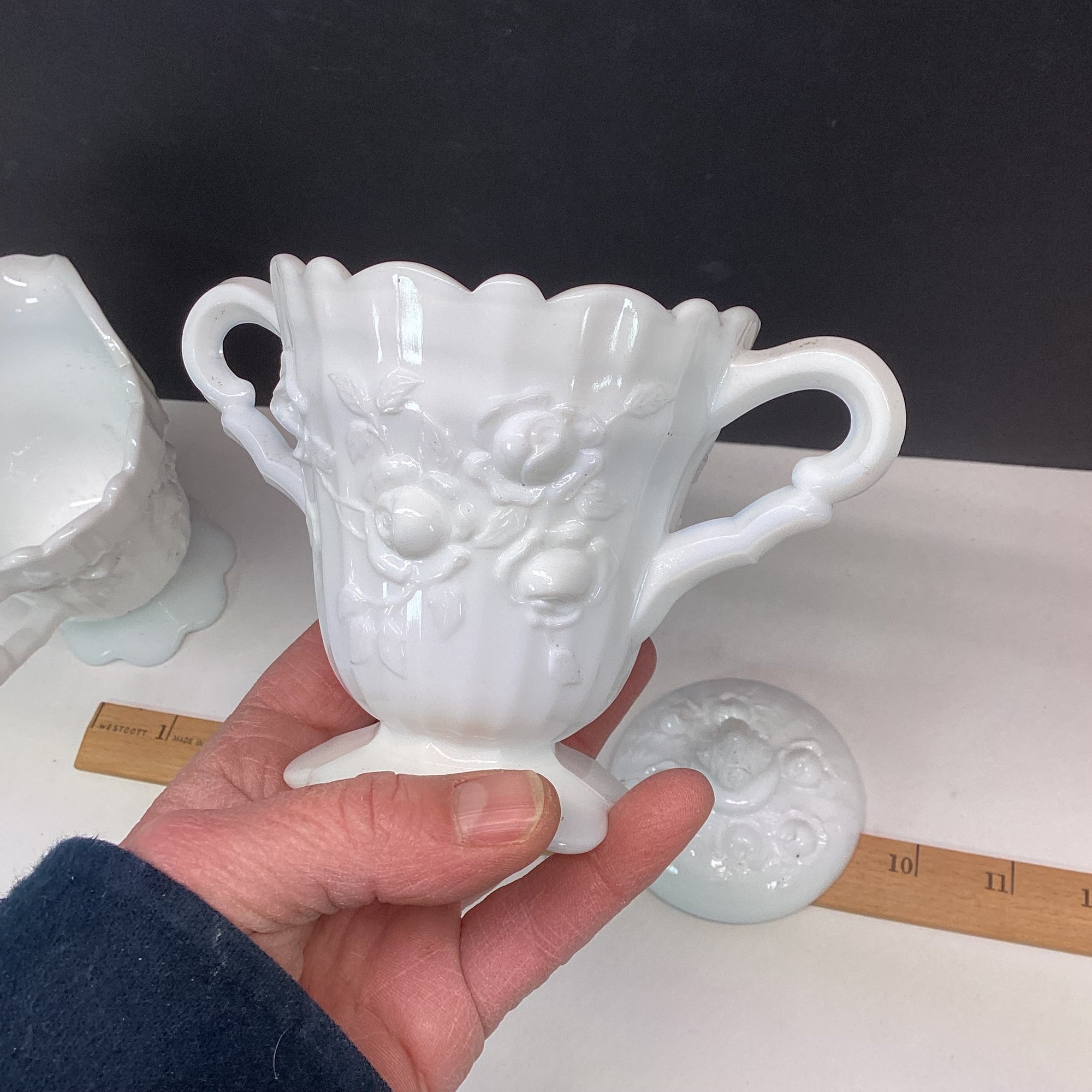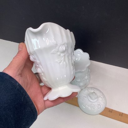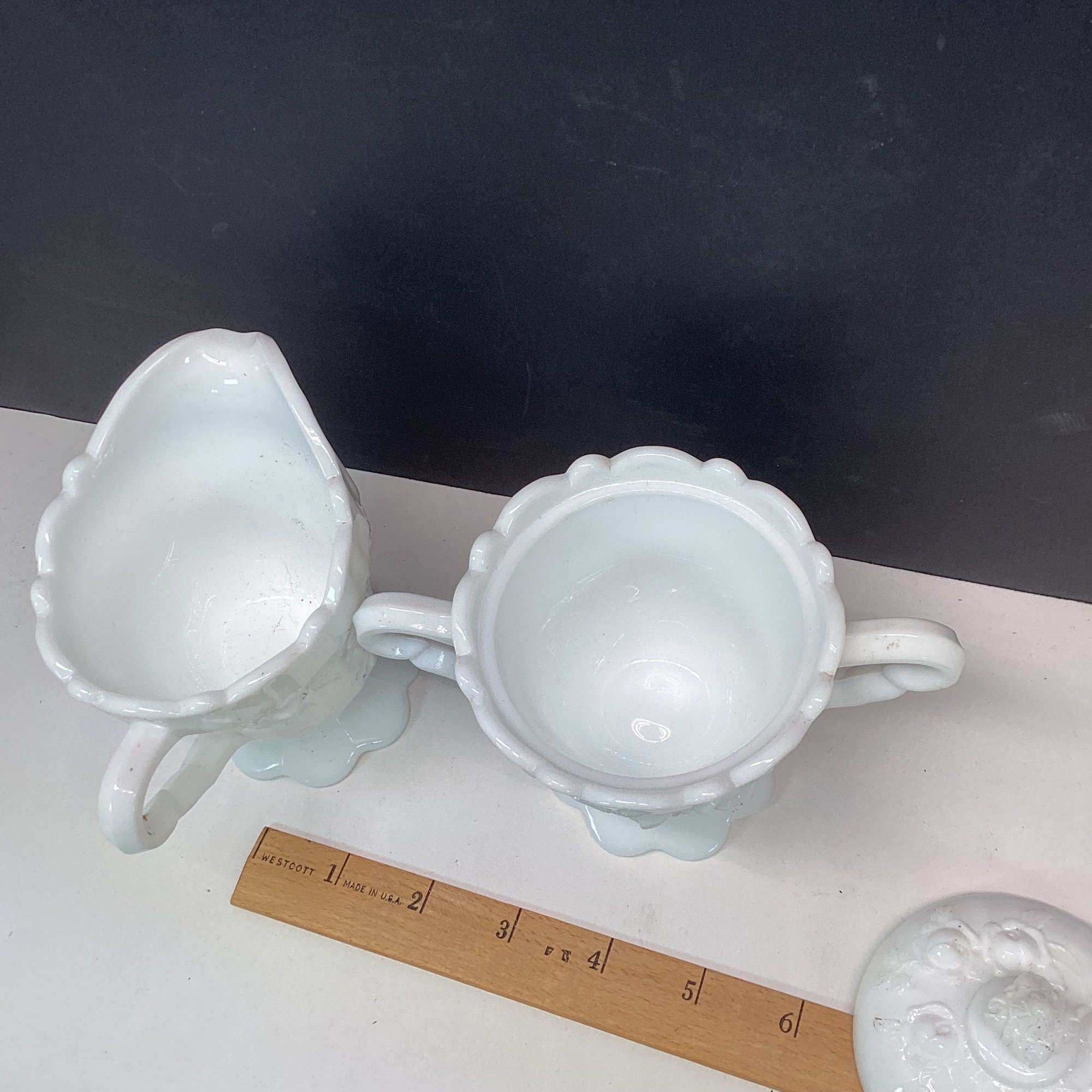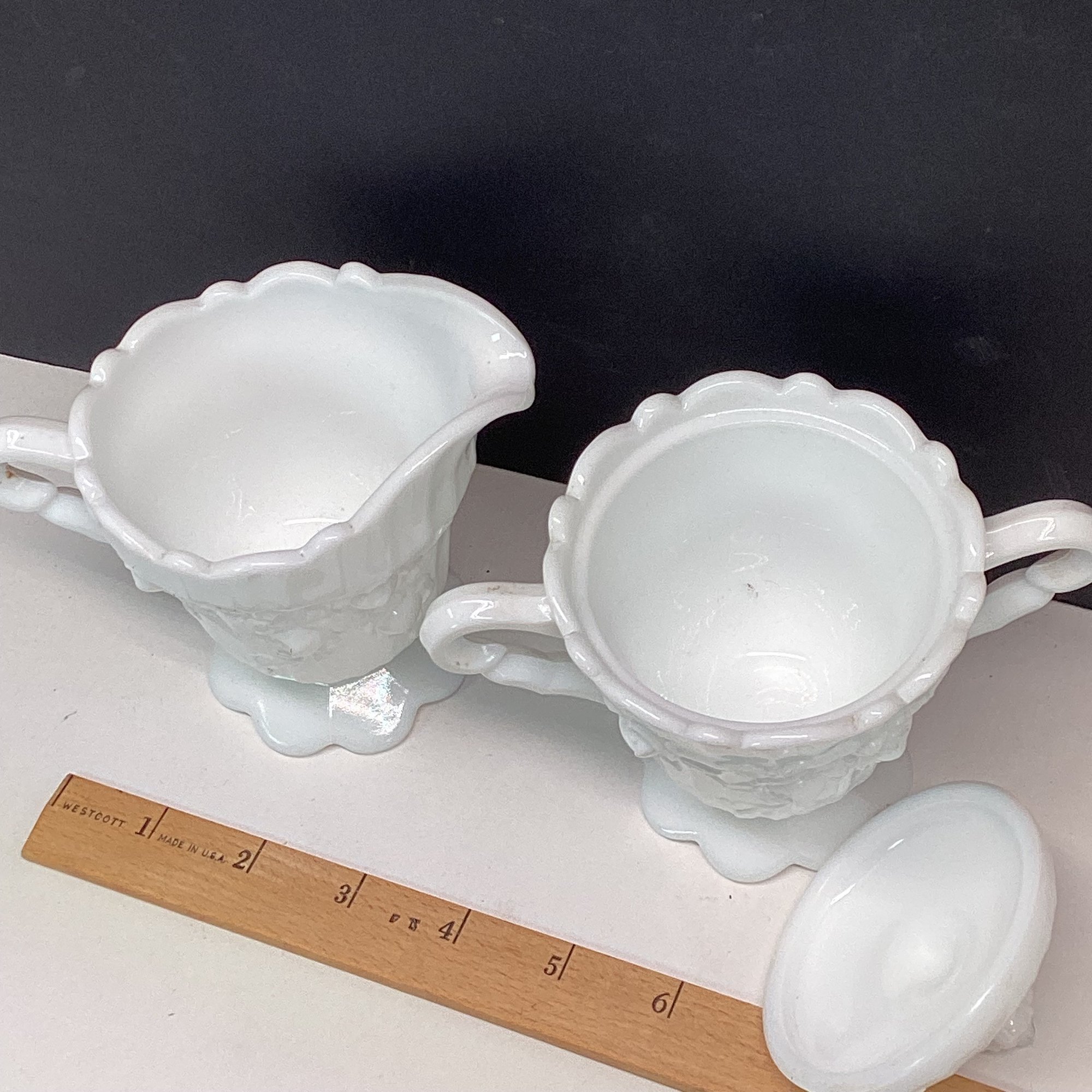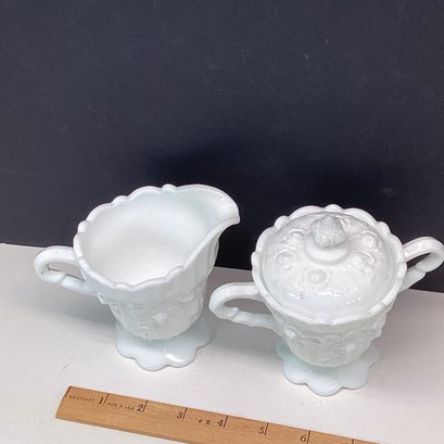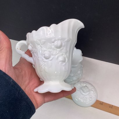 Elaborate Vintage Milk Glass Sugar And Creamer