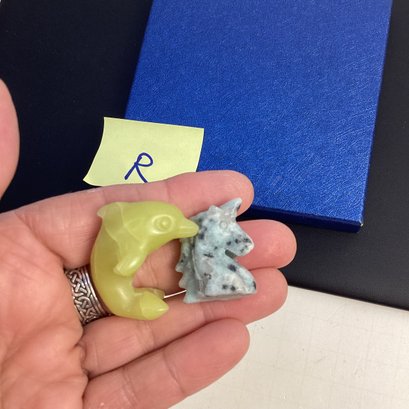Genuine Carved Crystal Assortment, LOT R, Yellow Dolphin, Kiwi Jasper Unicorn