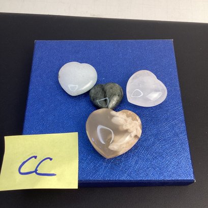 Genuine Crystal Hearts Assortment, LOT CC, Flower Agate, Rose Quartz, Obsidian, Sage Mica