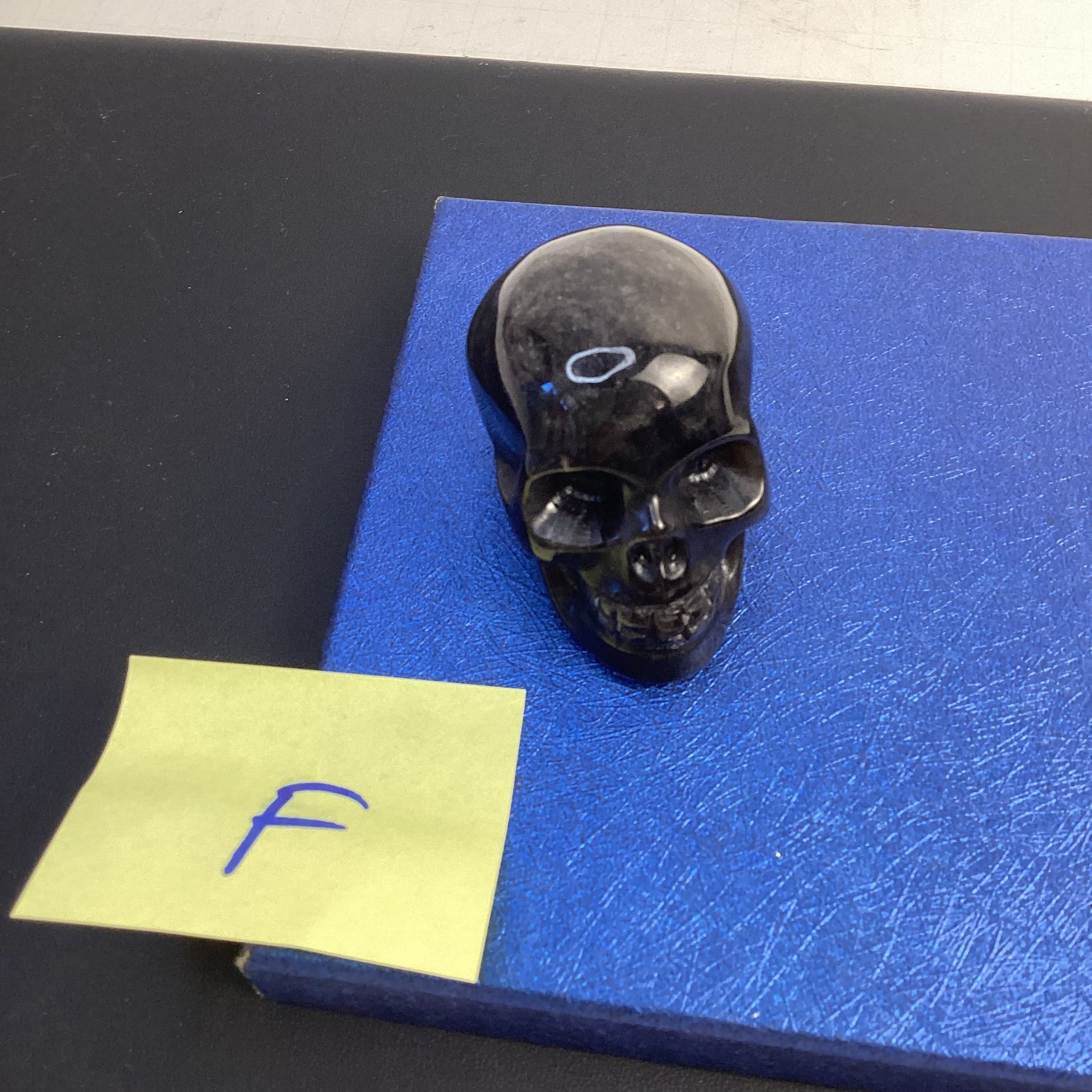 Genuine Silver Sheen Obsidian Carved Skull, LOT F