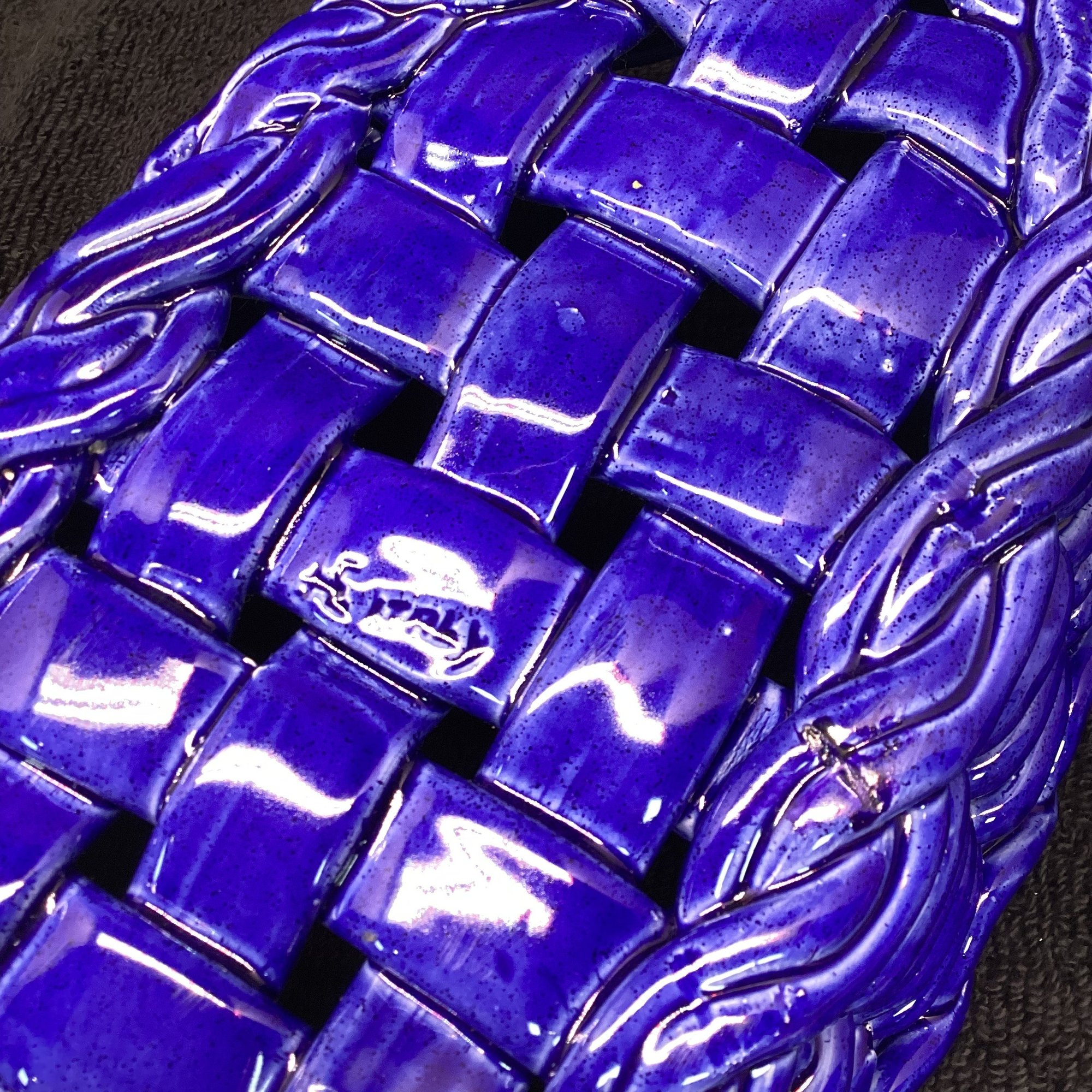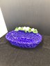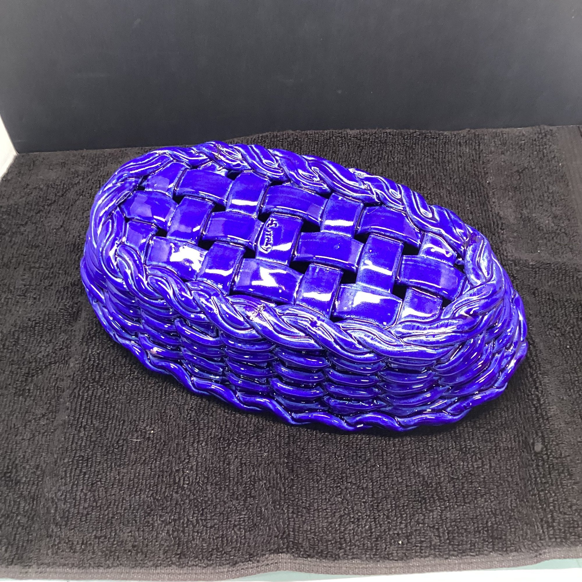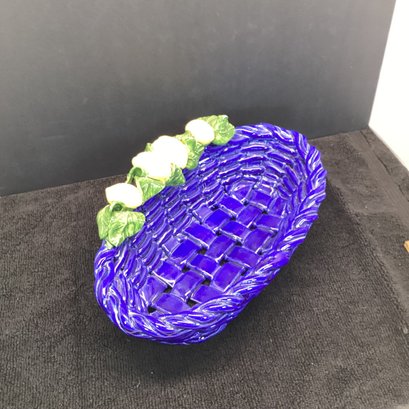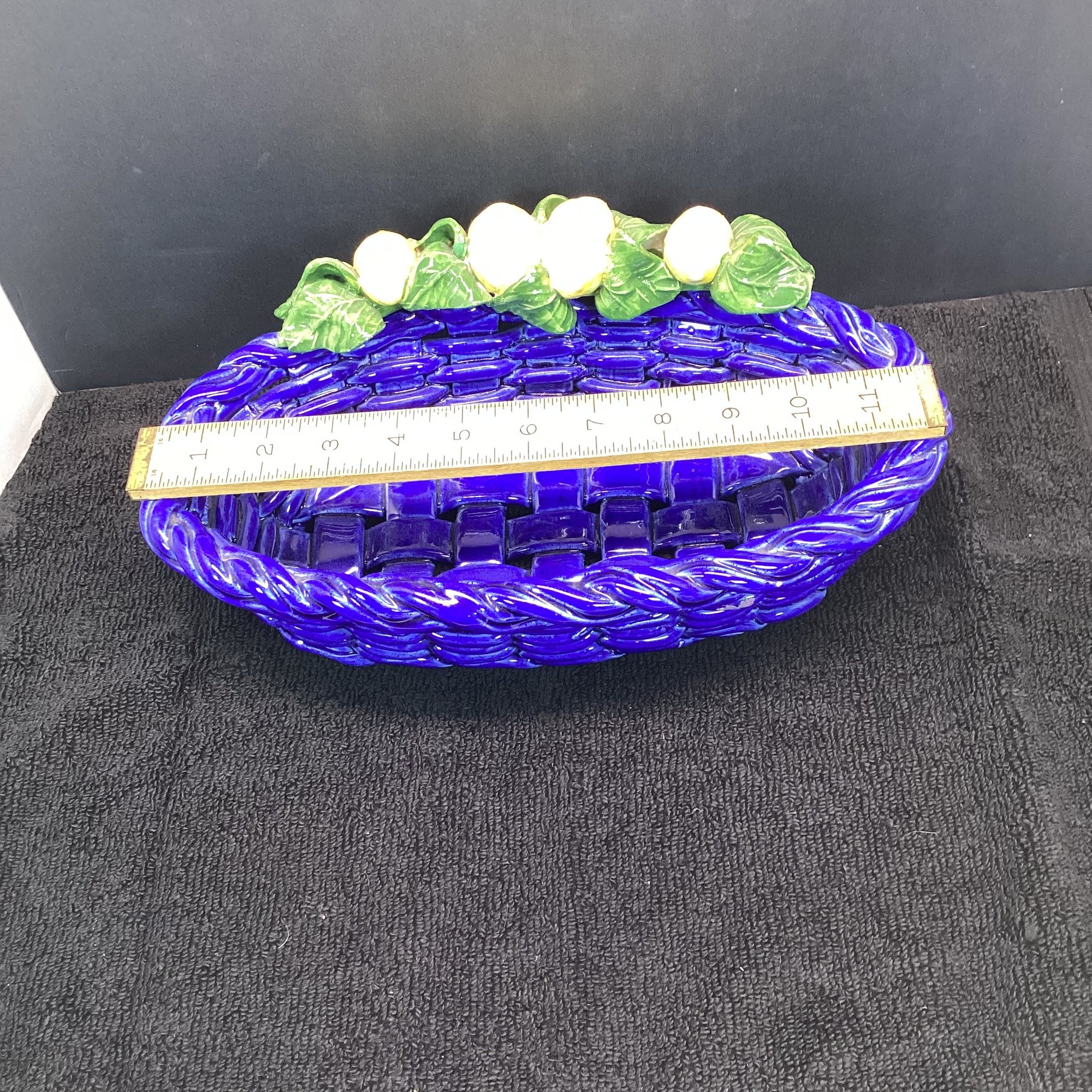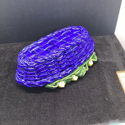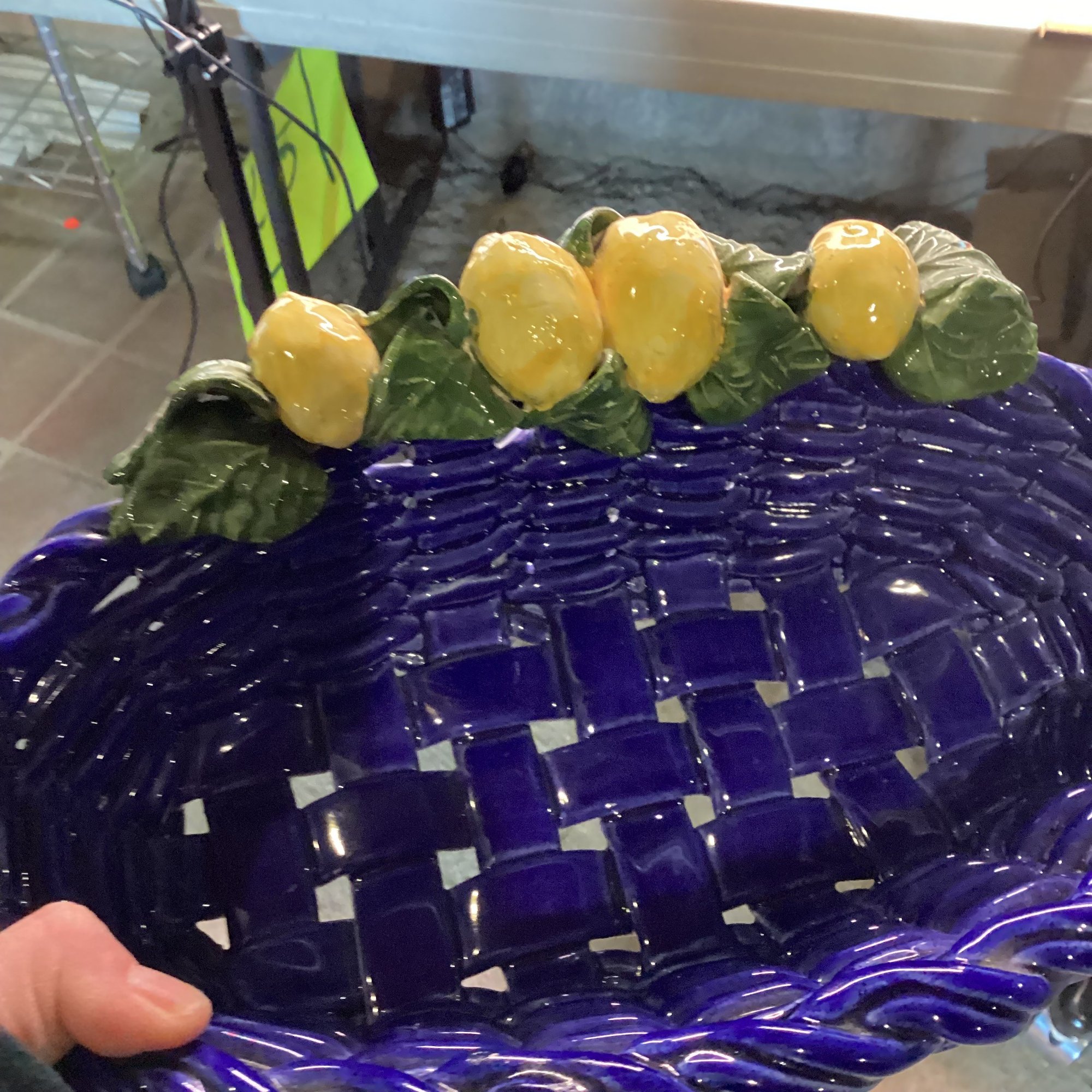 Large Bright Blue Ceramic Fruit Basket With Lemons, Italy