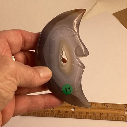 LOT 111, Rocks/crystals, Carved Moon, Orca Agate With Natural Druzy