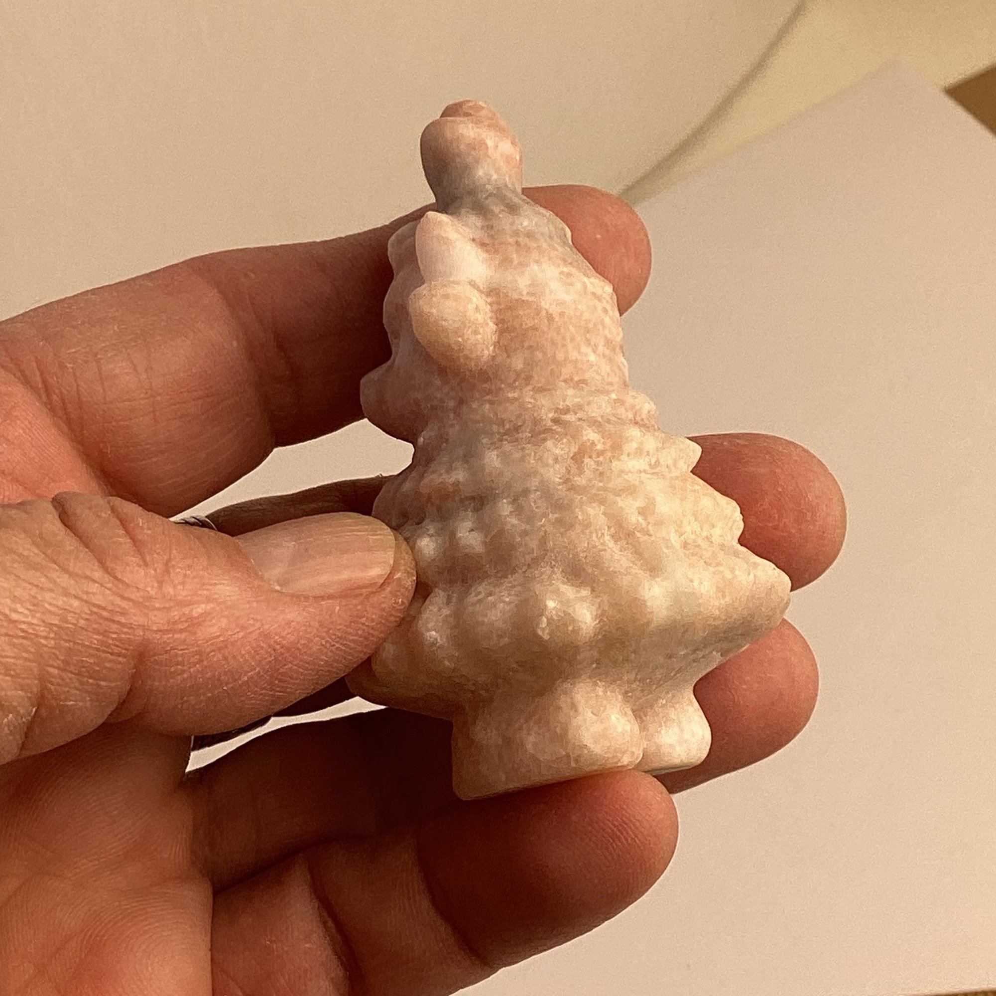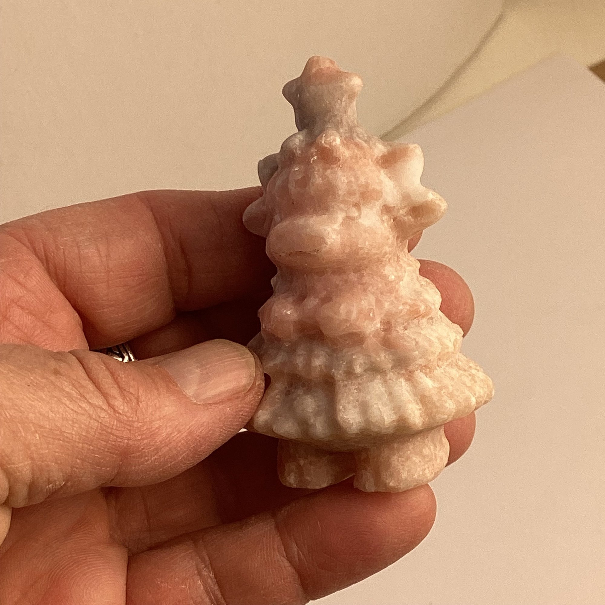 LOT 123, Rocks/crystals, Carved Pink Calcite Cow Christmas Tree