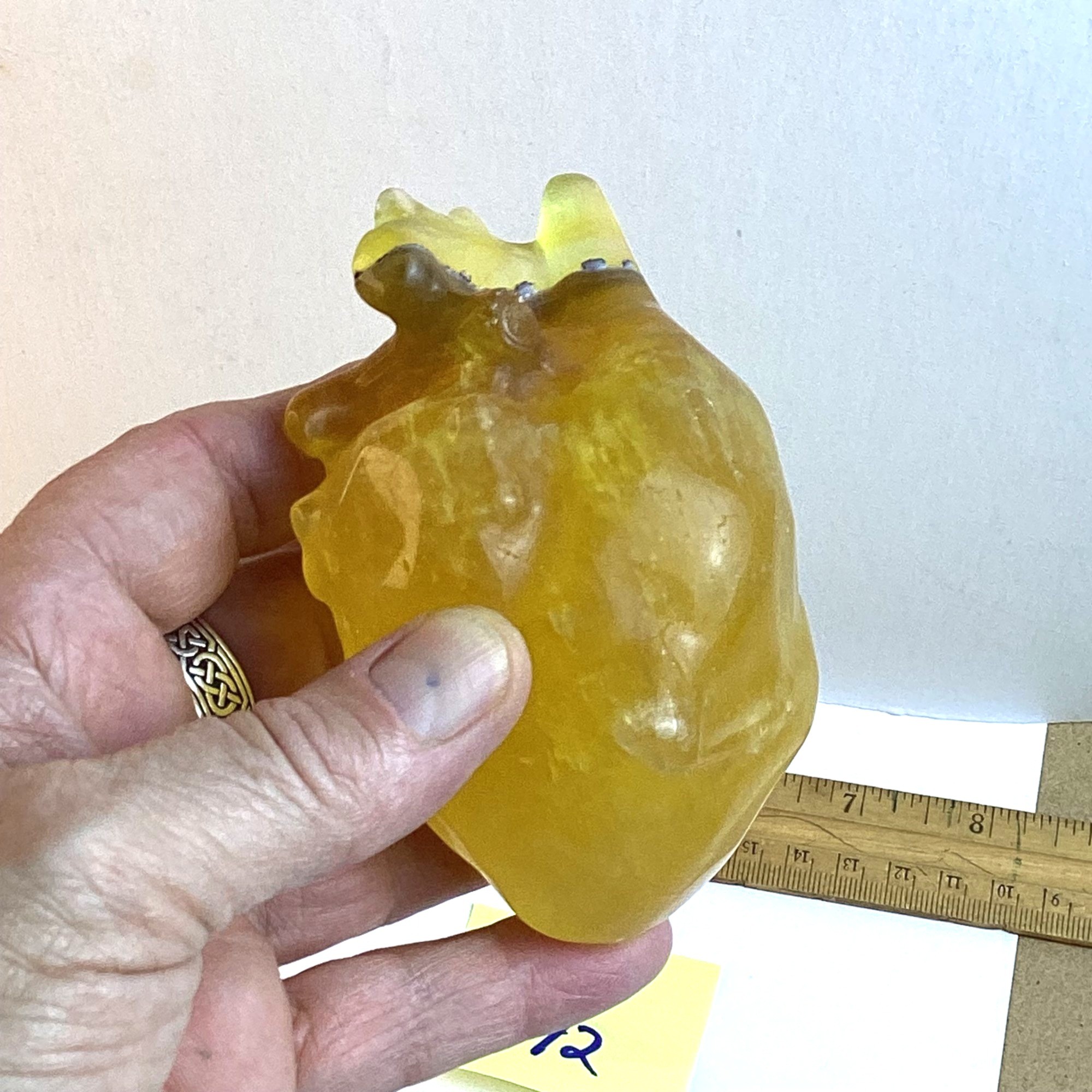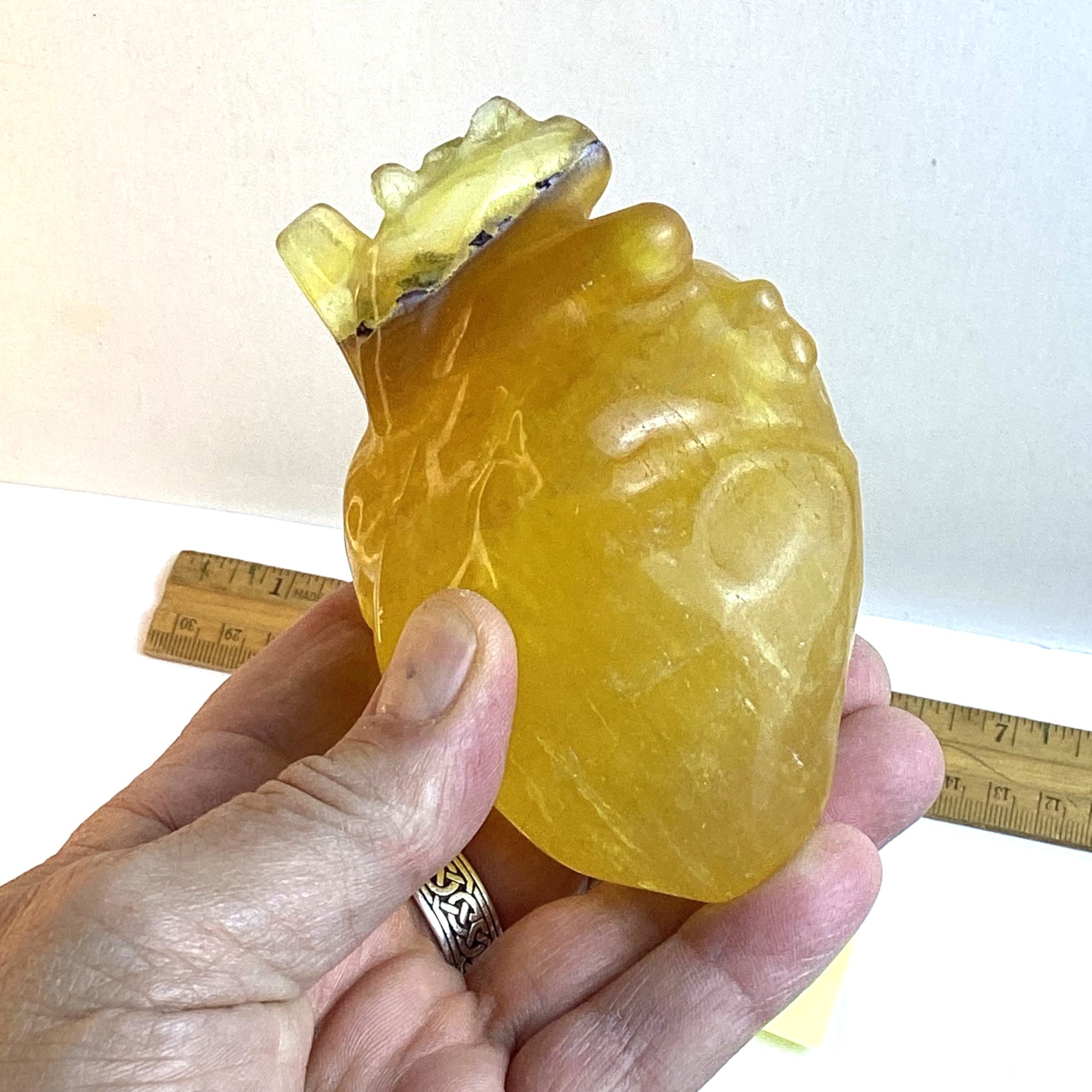 LOT 42, Rocks/crystals, Carved Yellow Fluorite Anatomical Heart, 4 Inch