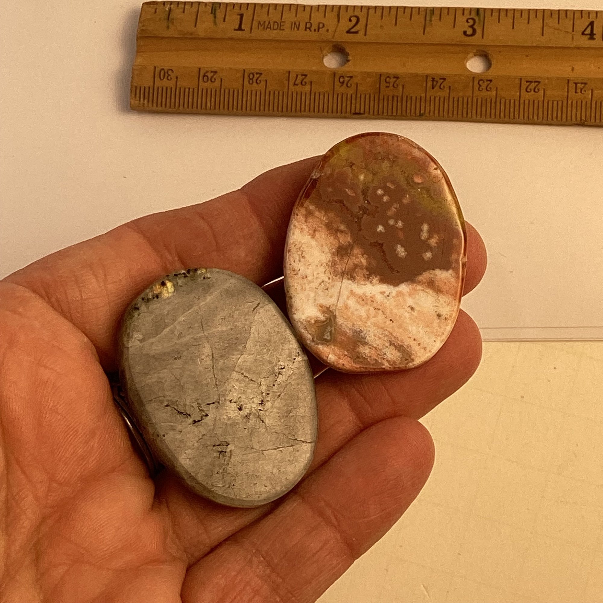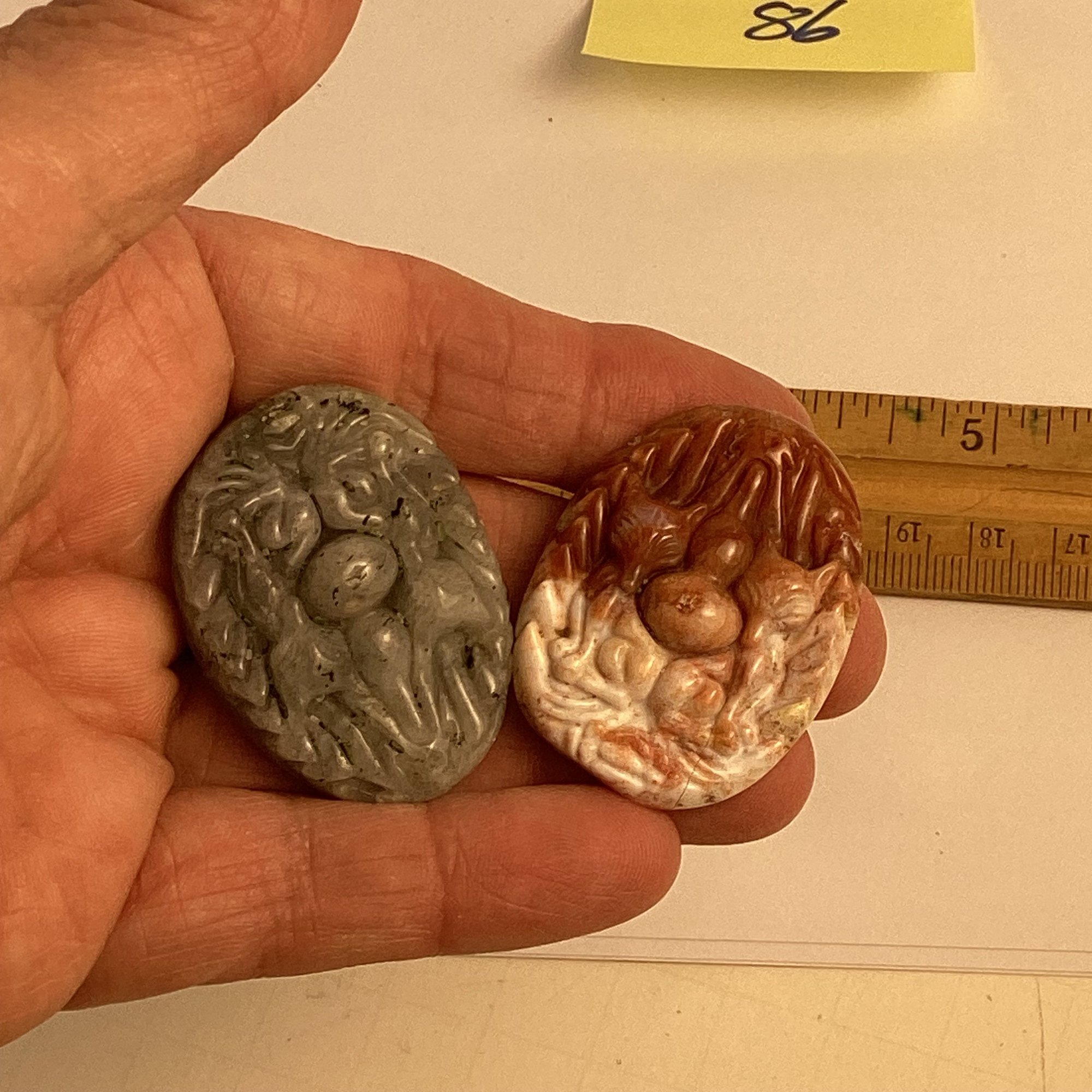 LOT 86, Rocks/crystals, 2 Pc., 9 Tailed Fox Carved Cabochons, Labradorite/carnelian