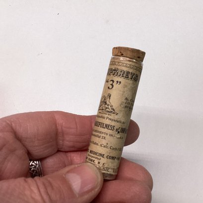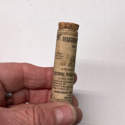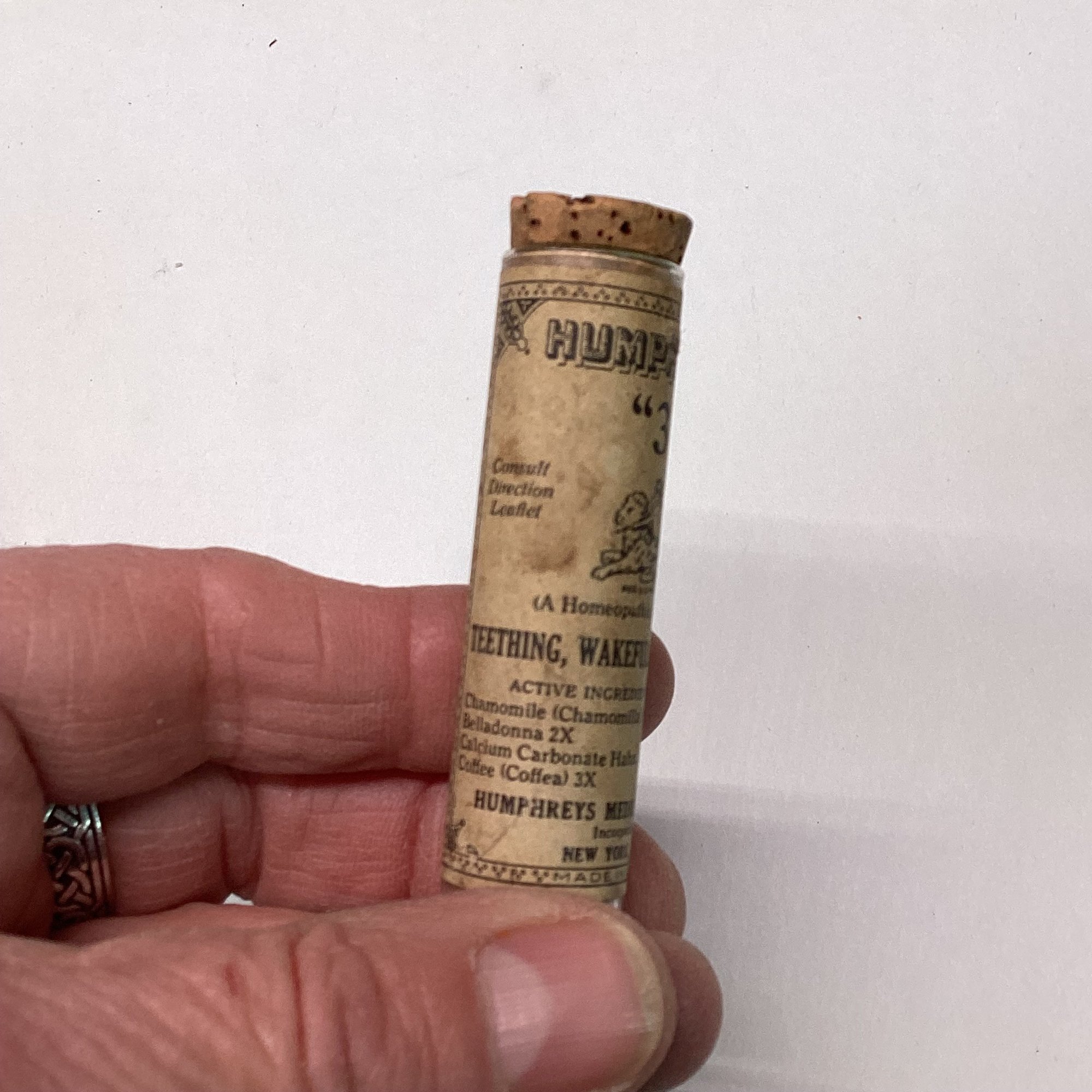 The only container with contents is the Humphrey’s teething vial. All else is empty.