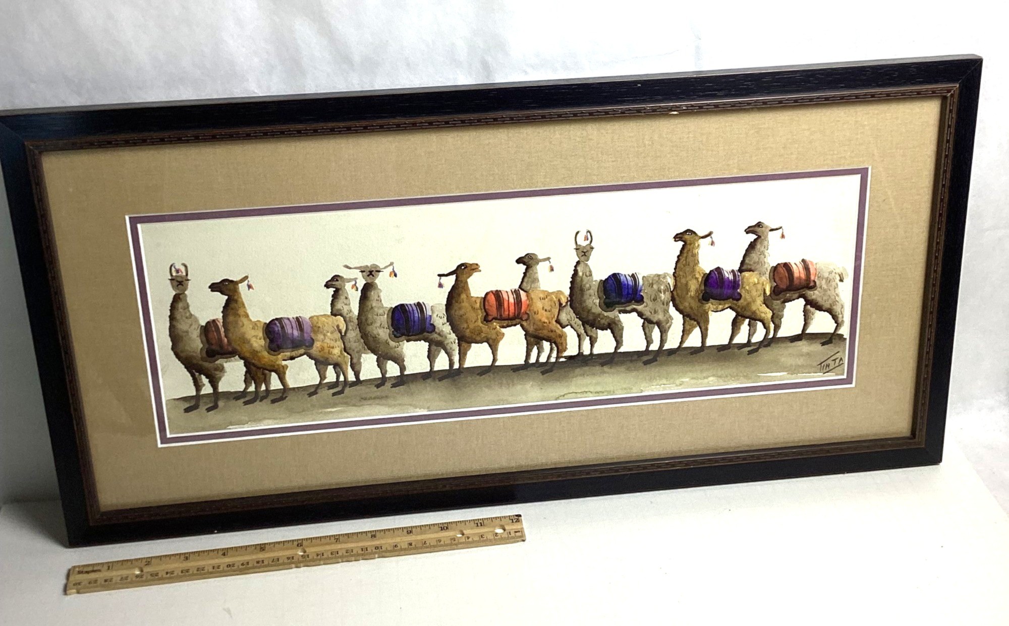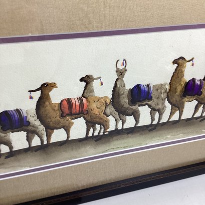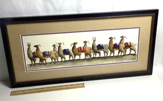 Original Watercolor From Peru, Alpaca, 20 In., NO SHIPPING