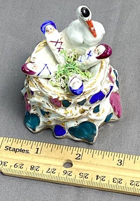 Vintage/antique Staffordshire Trinket Box, Stork With Babies