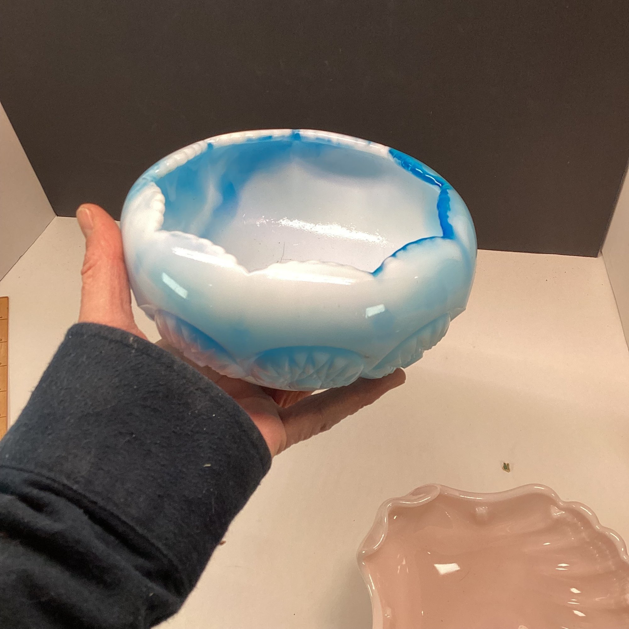 Vintage Blue And White Slag Glass Bowl, EAPG