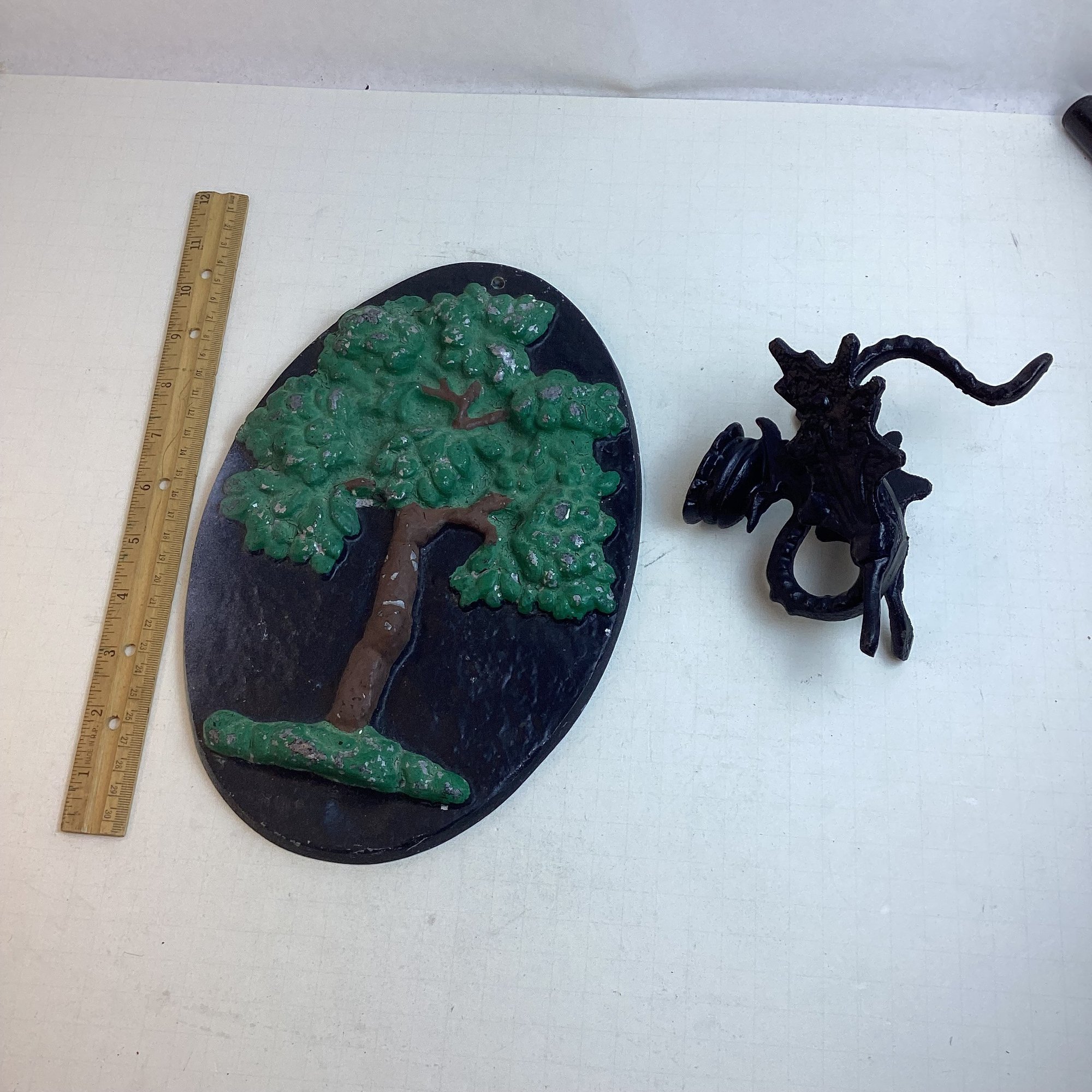 Vintage Cast Iron Plaque With Tree And Iron Fancy Wall Hook