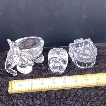 Vintage Clear Glass Decorative Lot, Elephant Votive Holder, Birdcage Water Dish (bracket Broken)