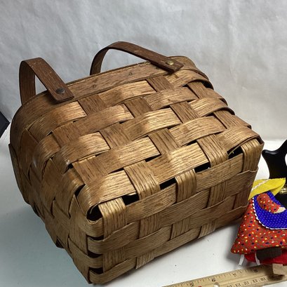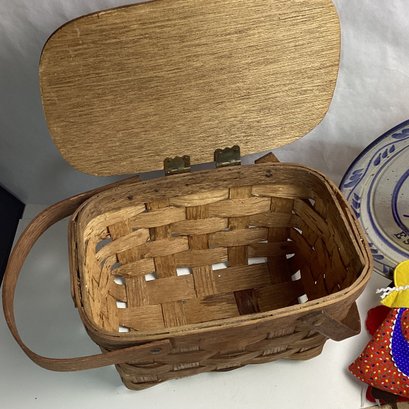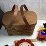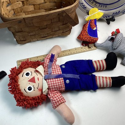 Vintage Country Lot, Basket With Hinged Lid/handles, Knickerbocker Raggedy Andy, Etc.