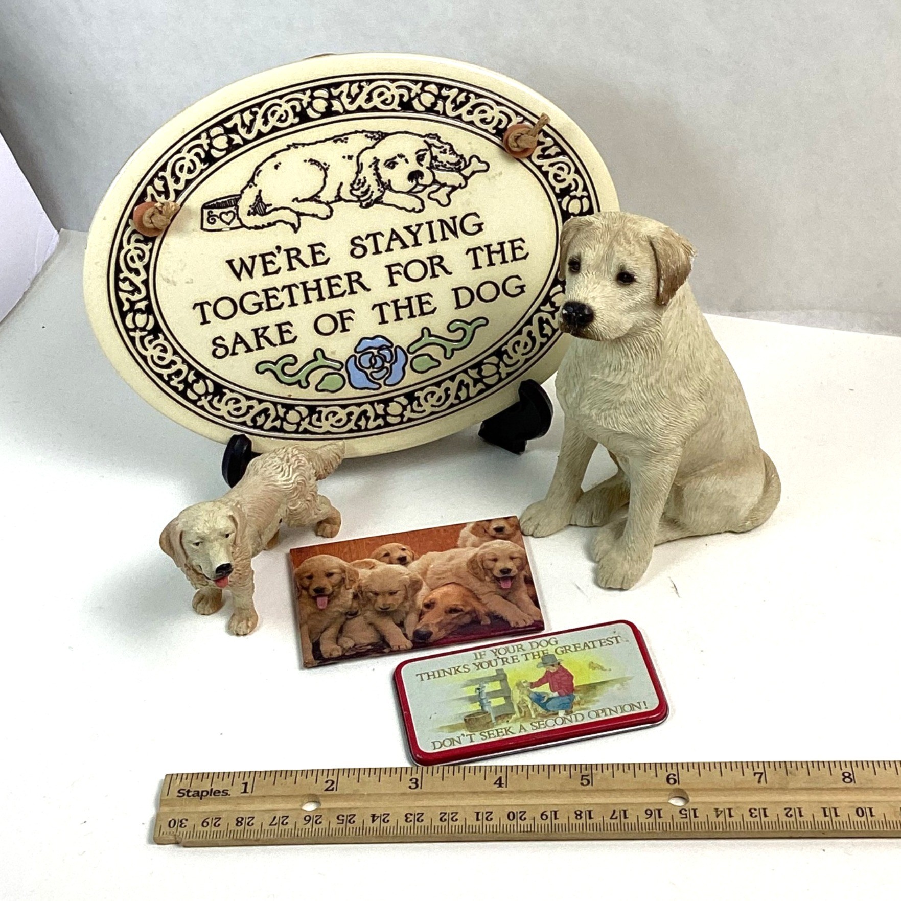 Vintage Dog Related Decorative Lot, Wall Plaque, Yellow Lab, Etc.