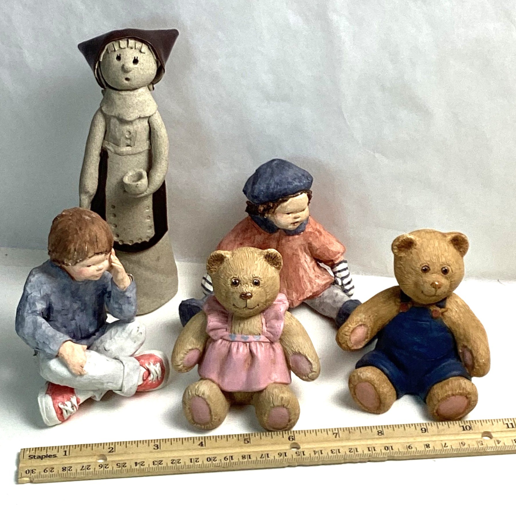 Vintage Figurine Lot, Clay, Resin, Etc., Debby Rubis Bears 1985 And More
