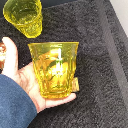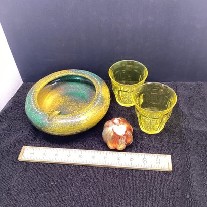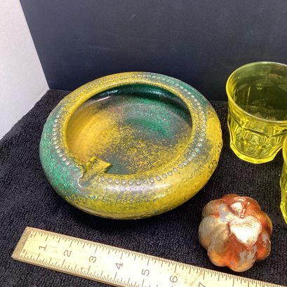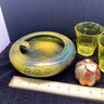 Vintage Greens, Yellow, Chartreuse Lot, Ceramic Planter, Bright Yellow Glasses