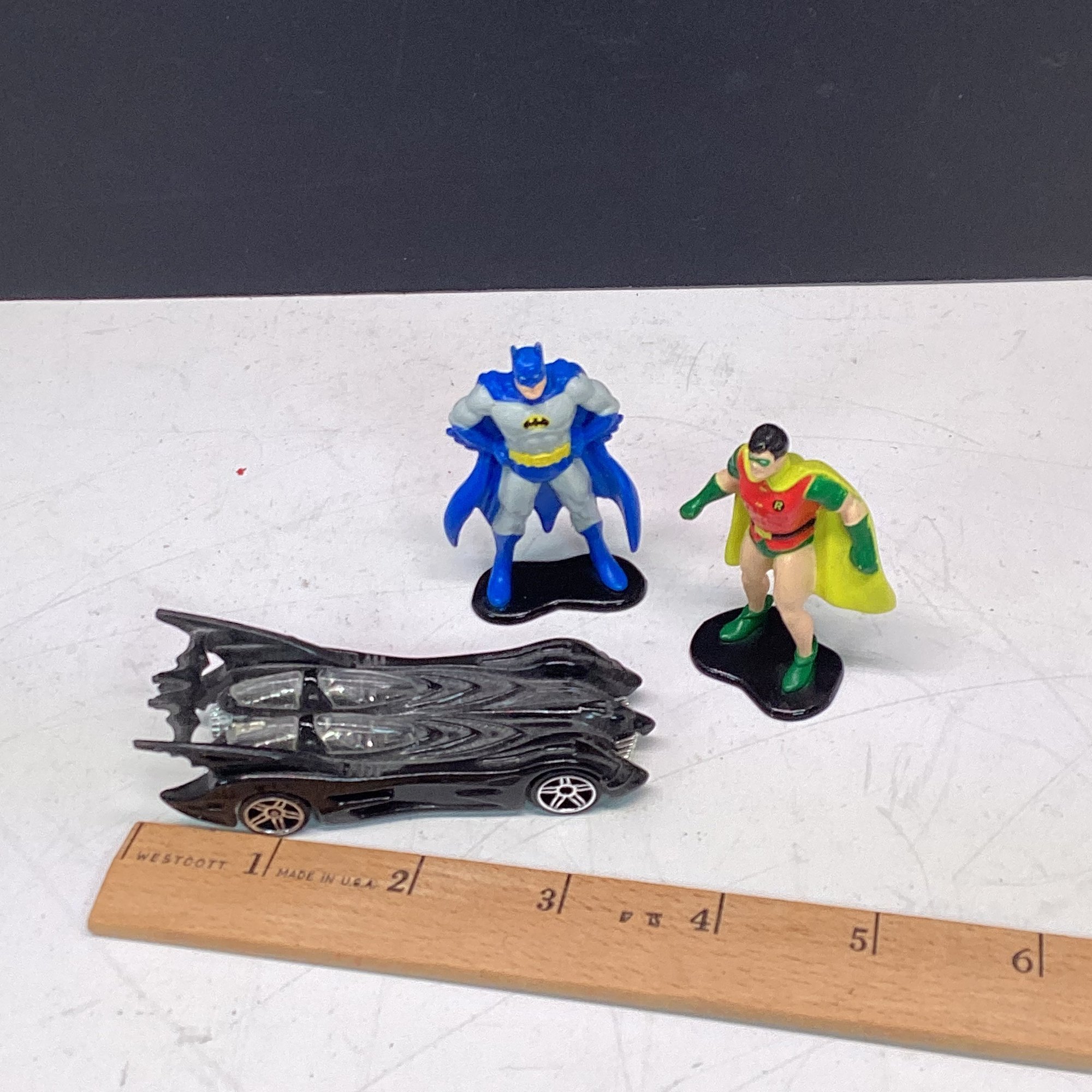 Vintage Hot Wheels Batmobile And Two Ertl Batman Metal Figures (mint Cond,)