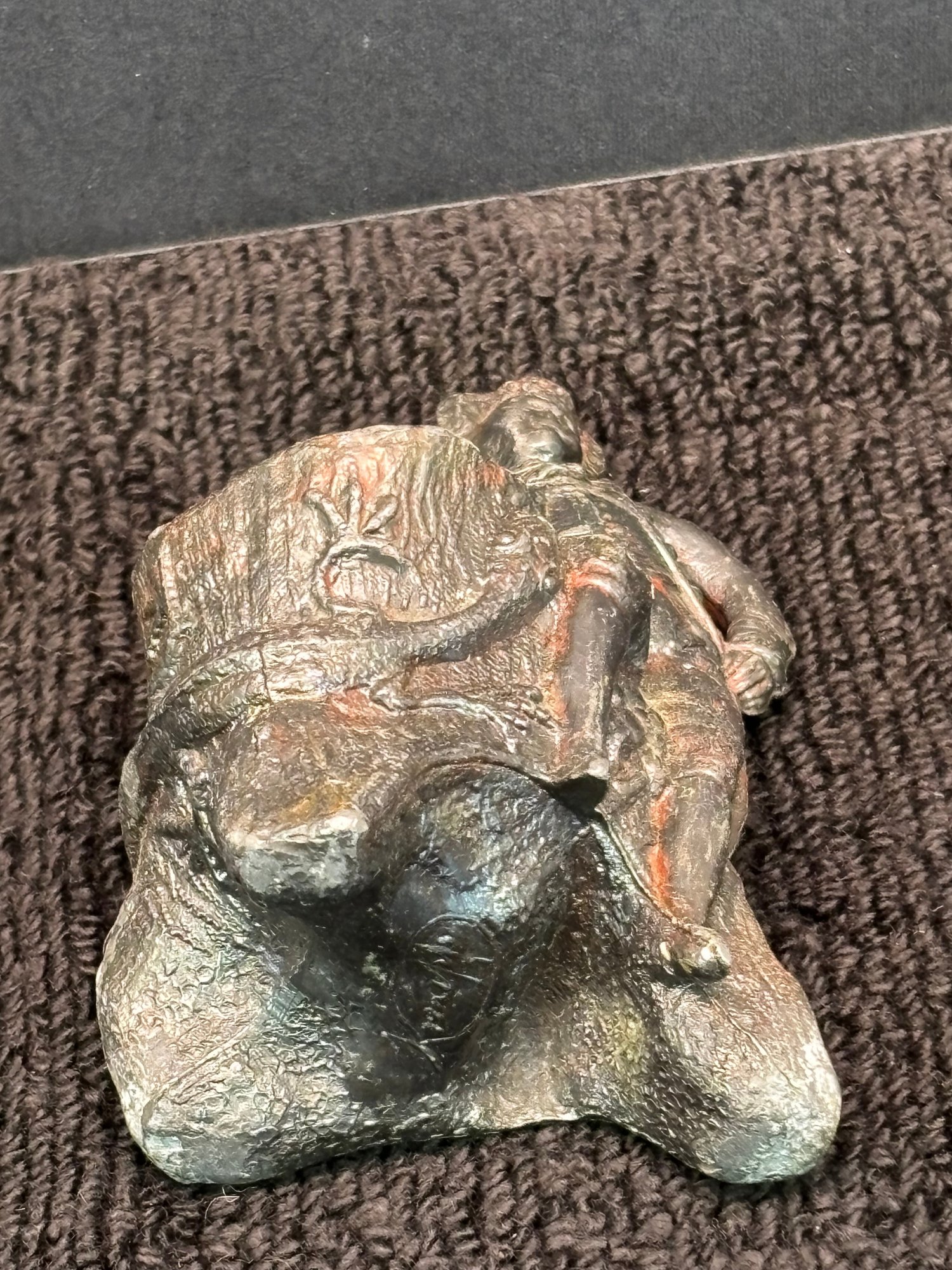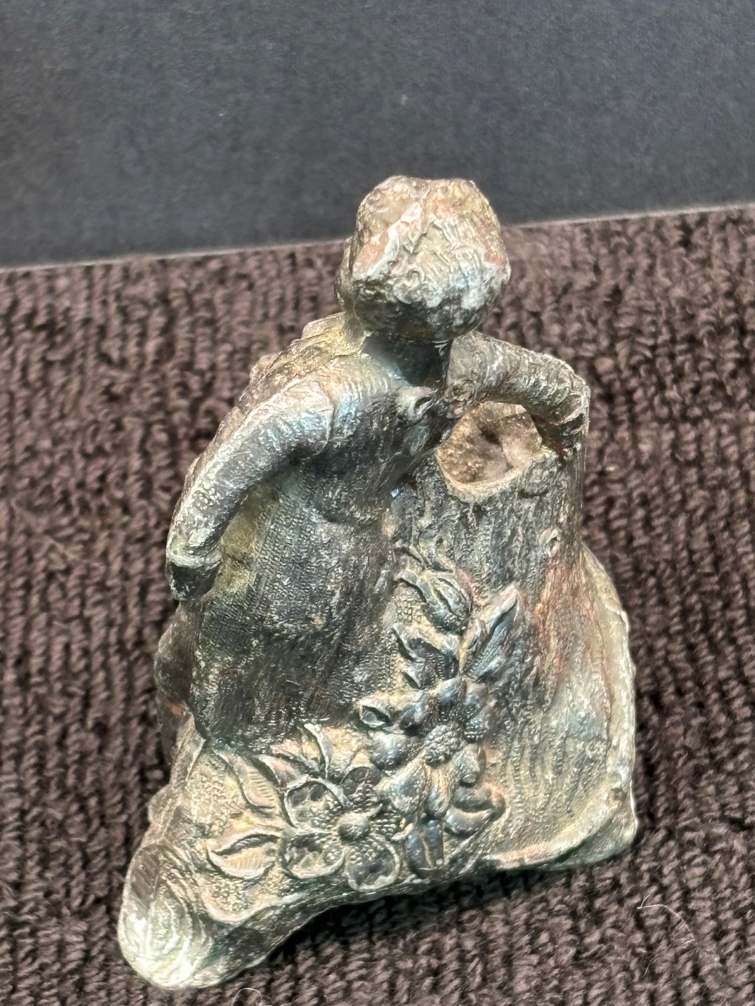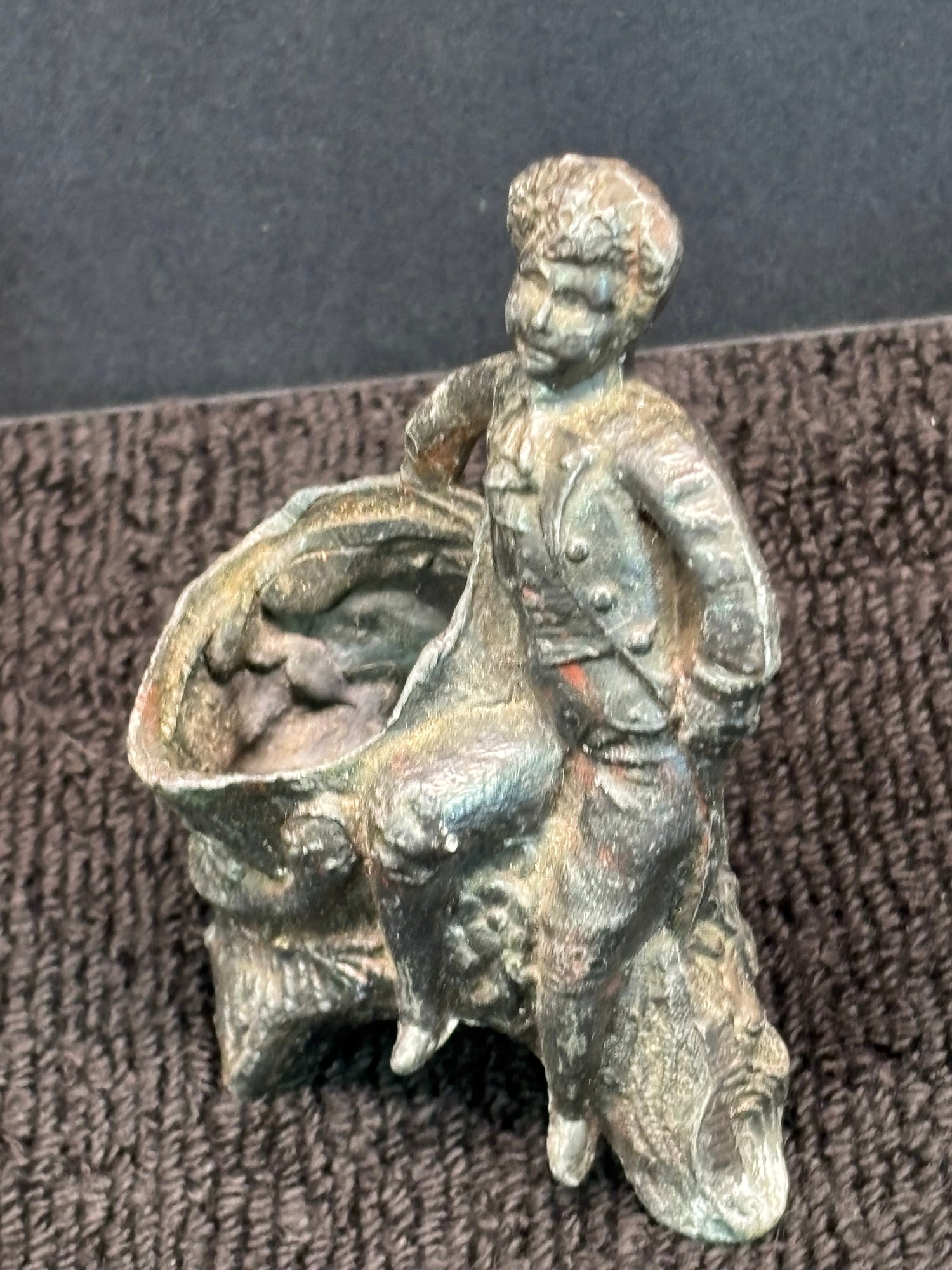 Vintage Knopp Metal Sculpture, Boy With Open Sack