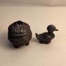 Vintage Metal Trinket Box, Hinged Lid And Solid Lead Duck