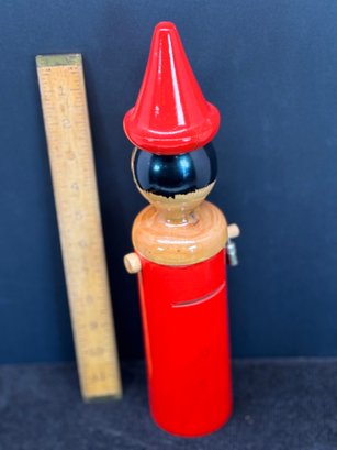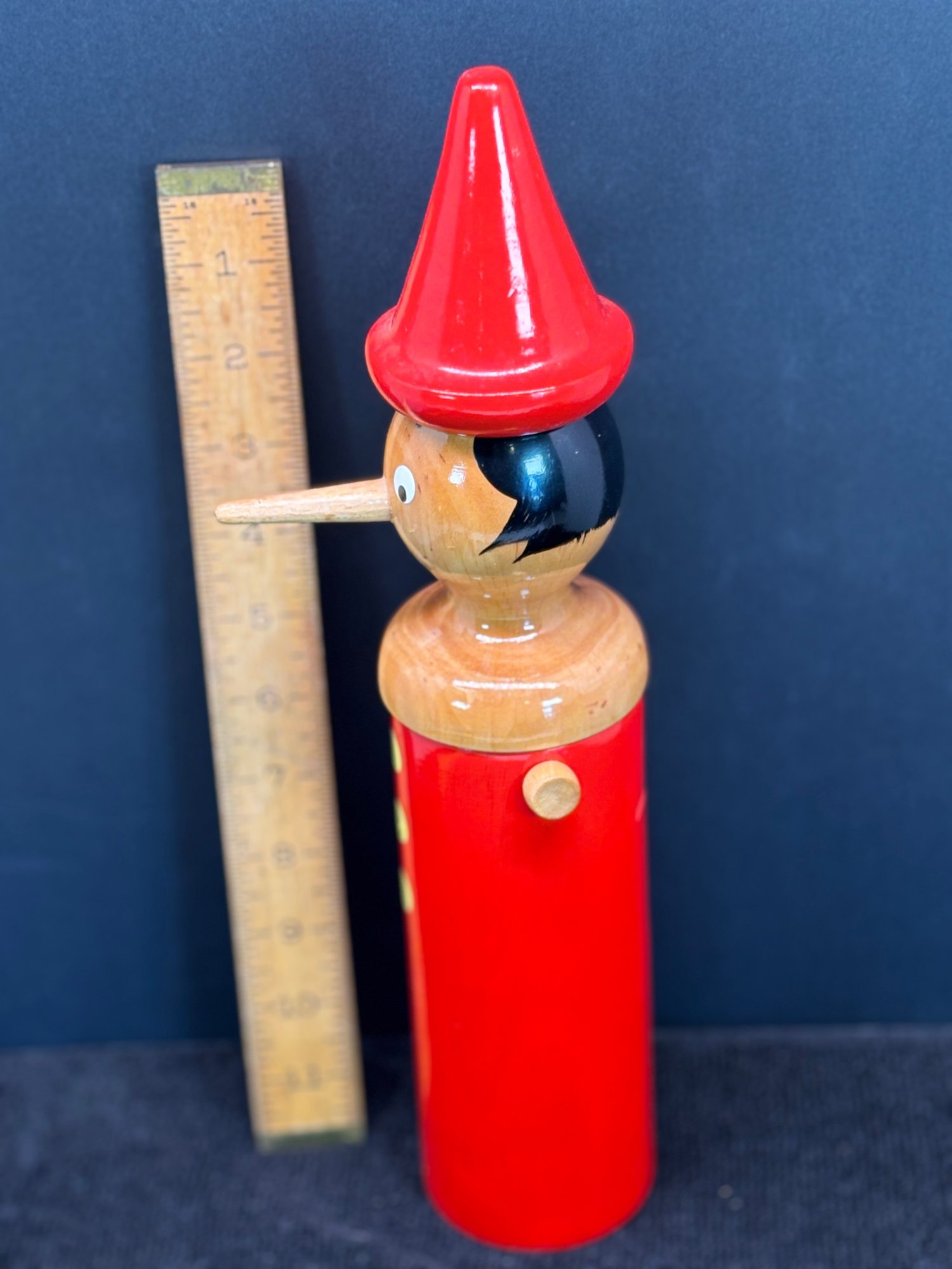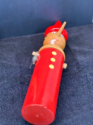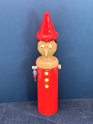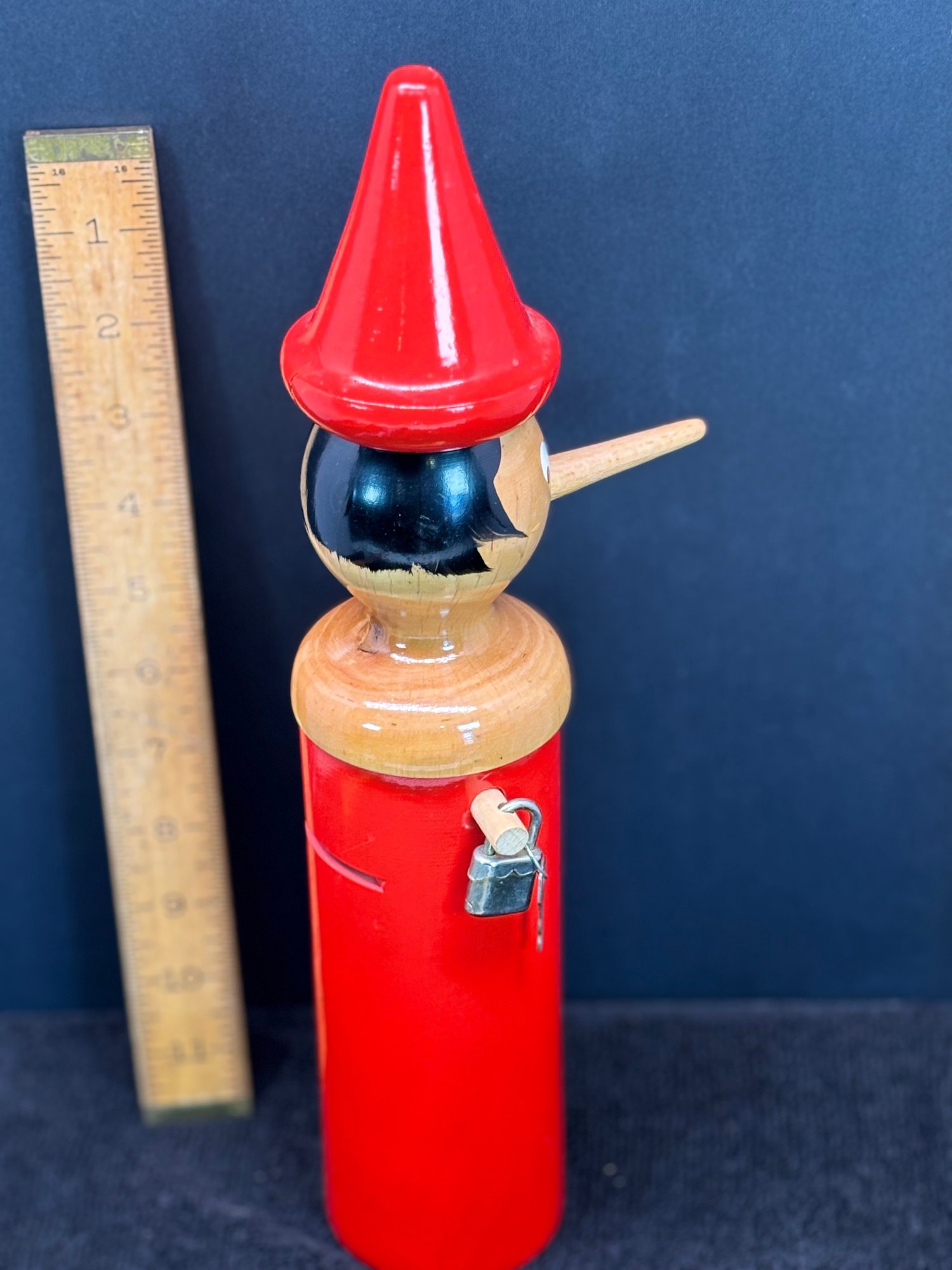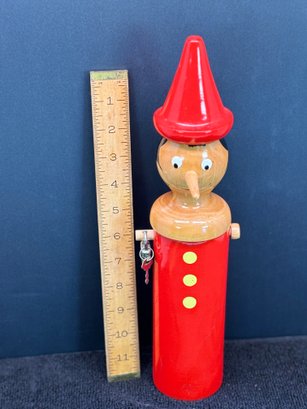 Vintage Painted Wood Pinocchio Bank With Lock And Key