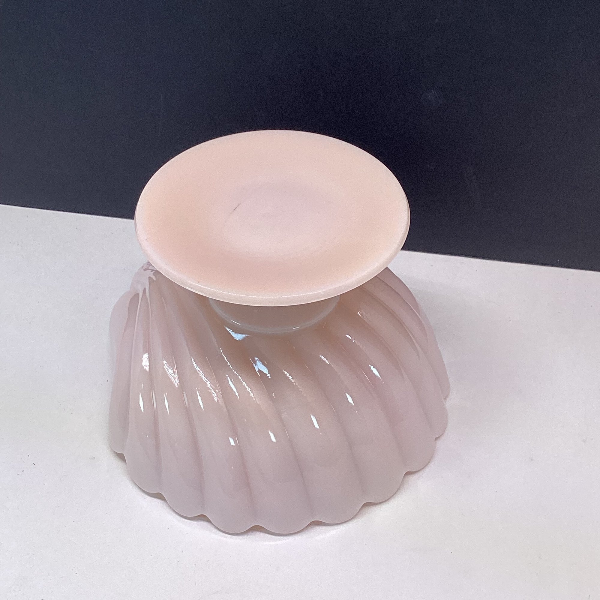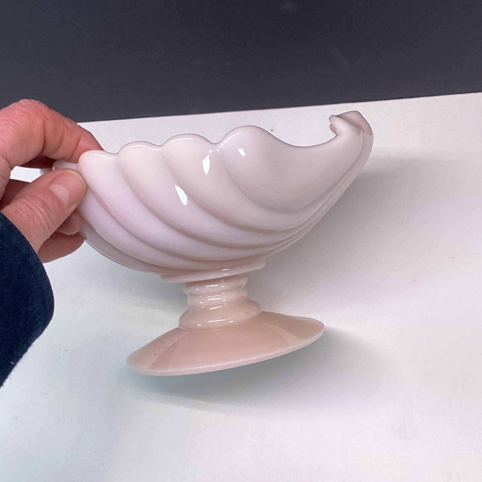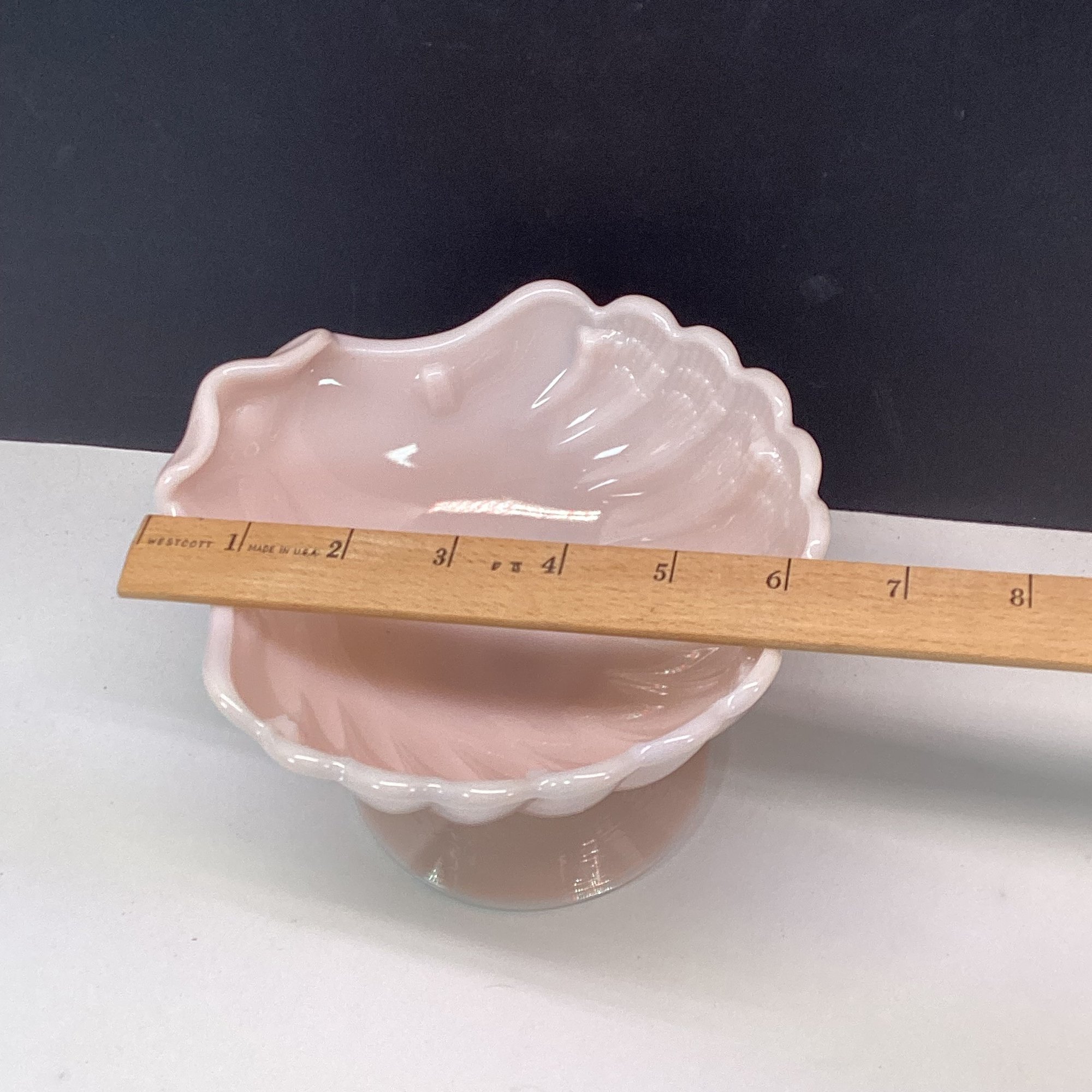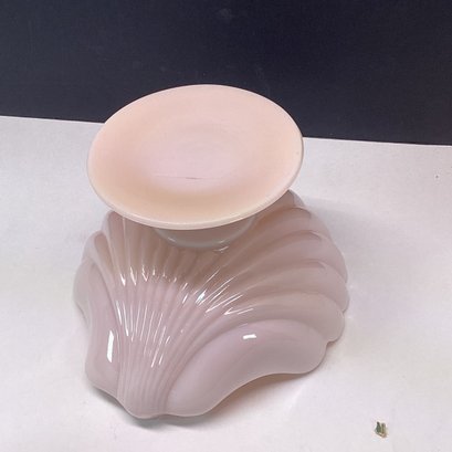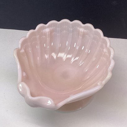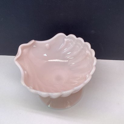 Vintage Pink Milk Glass Shell Compote Dish, Footed