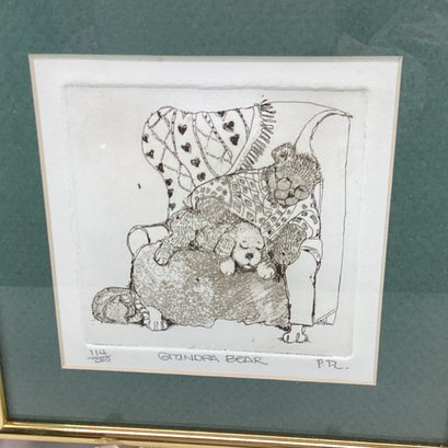 Vintage Signed And Numbered, Framed, Small Print, Grandpa Bear