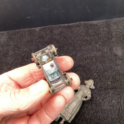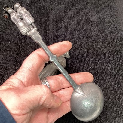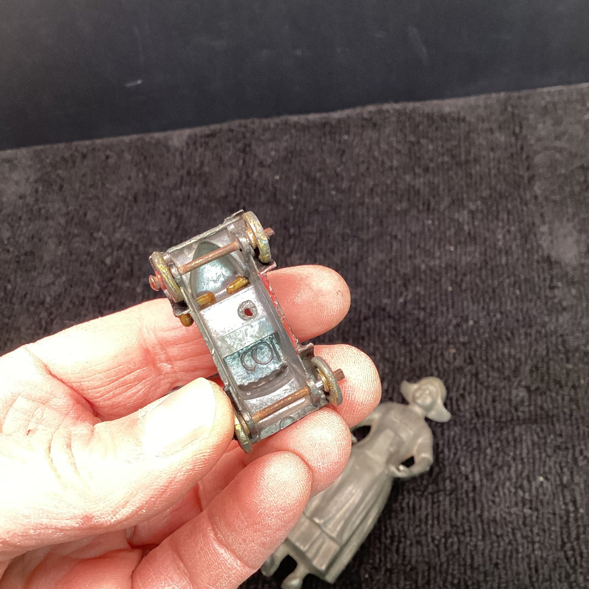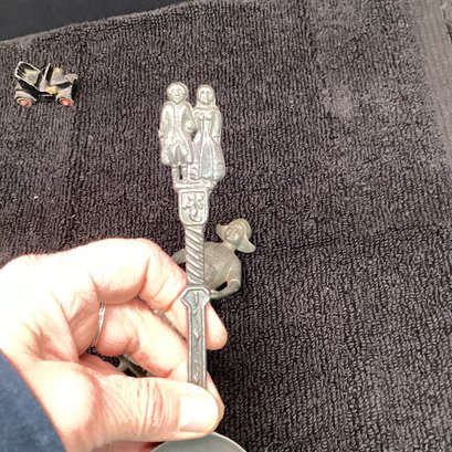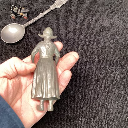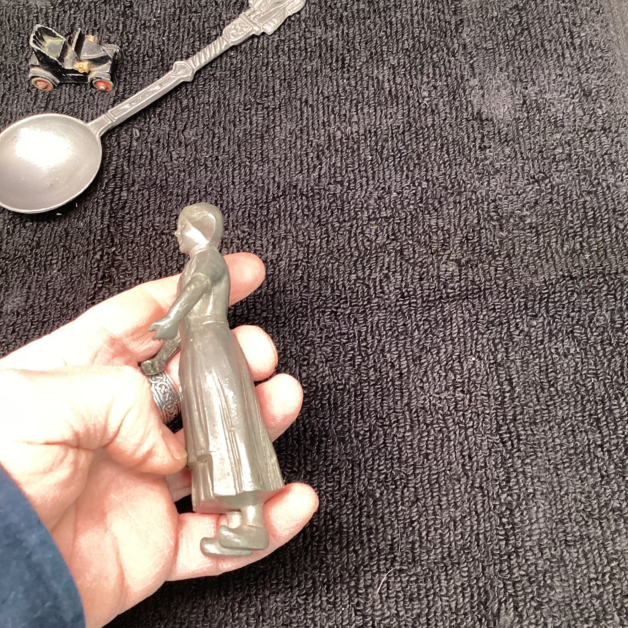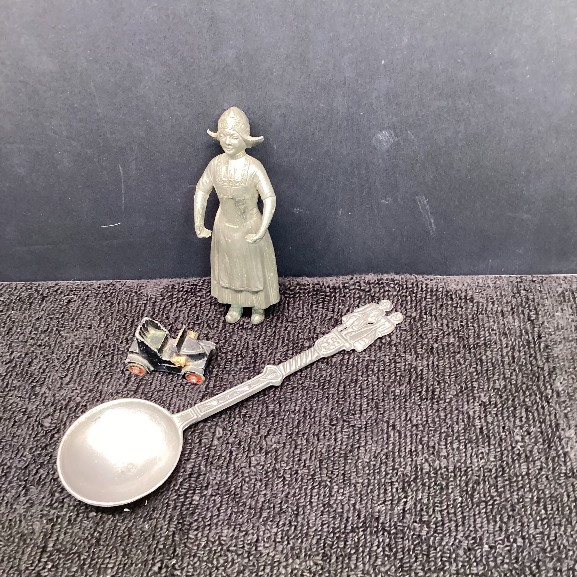 Vintage Solid Pewter Woman Figurine, Pewter Spoon And Metal Car