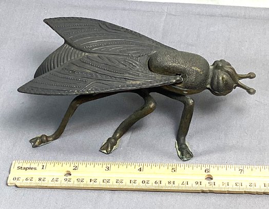 Vintage Tin And Brass Fly Table Ashtray, Wings Lift Up