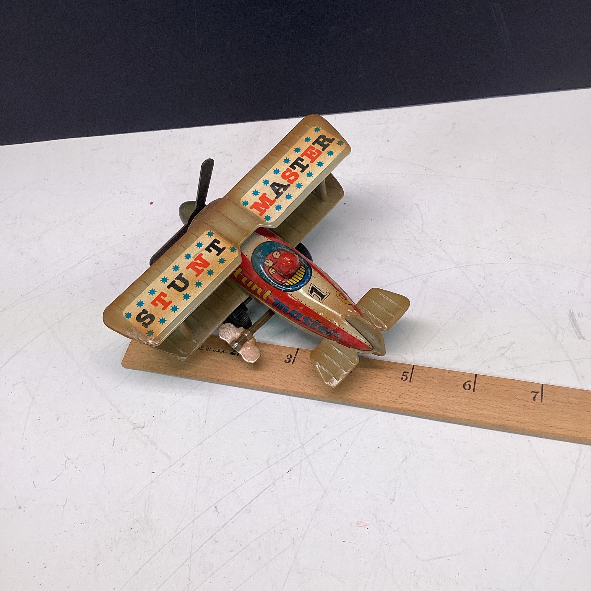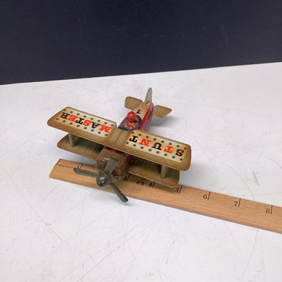Vintage Wind Up Bi Plane Toy, Works Great, Russ