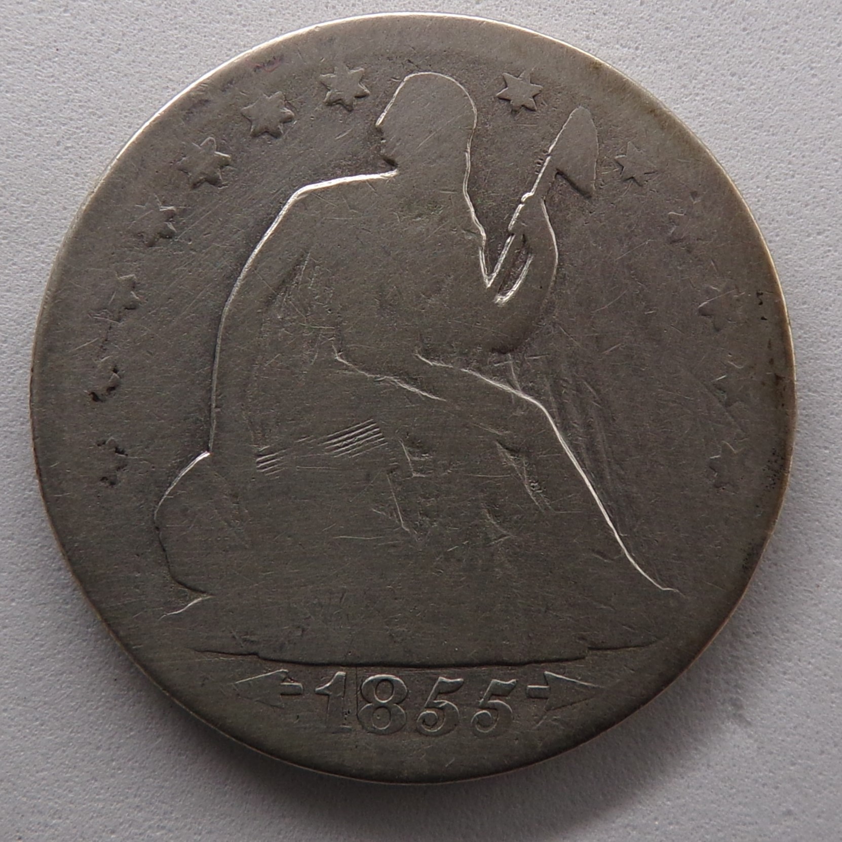 1855-O Seated Liberty Silver Half Dollar (Type 3, Arrows-No Rays)