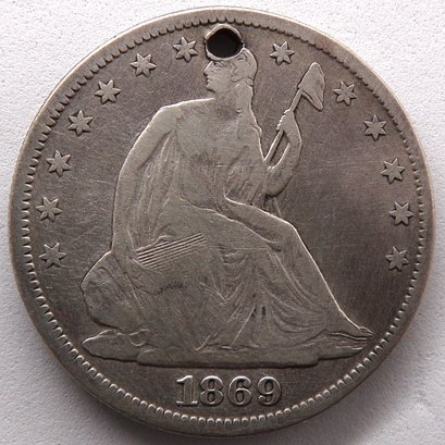1869 Seated Liberty Silver Half Dollar (Type 4, Motto Above Eagle, No Arrows) "Details-Drilled Hole"