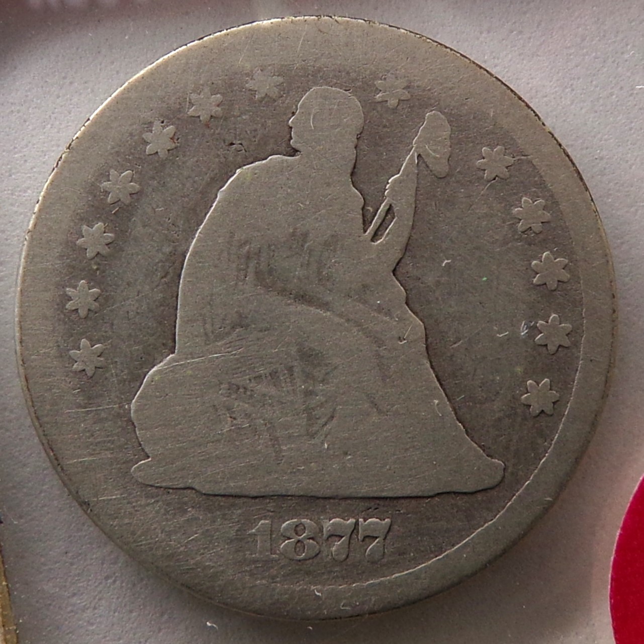 1877-CC (Carson City) Seated Liberty Silver Quarter "Some Liberty" (Type 4-"Motto Above Eagle, No Arrows)