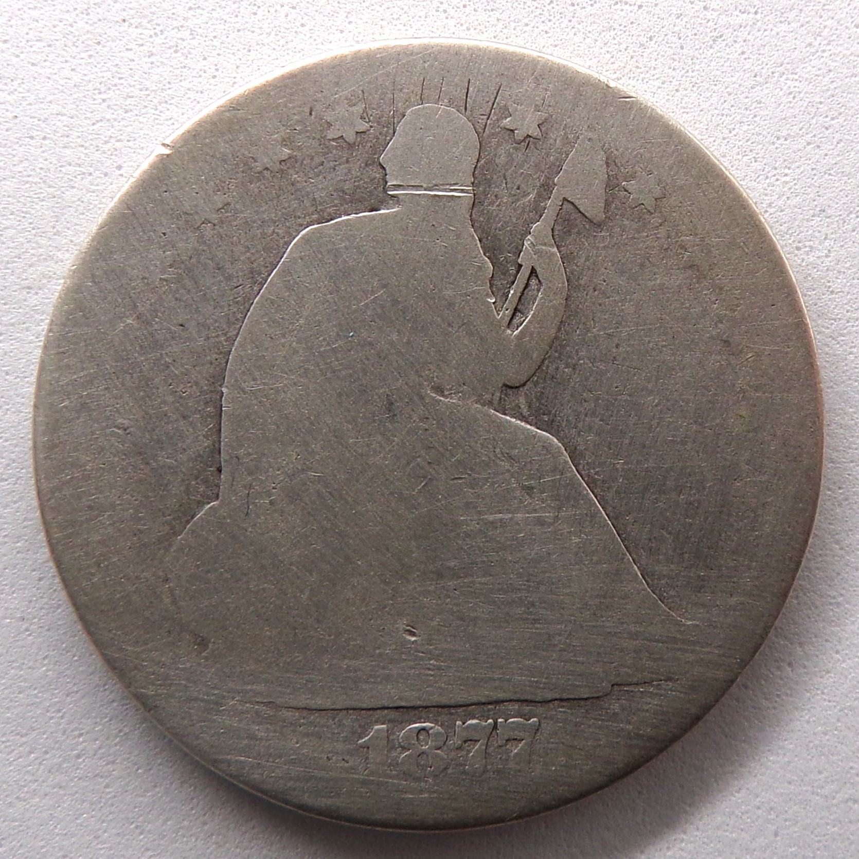 1877 Seated Liberty Silver Half Dollar (Type 4, Motto Above Eagle, No Arrows)