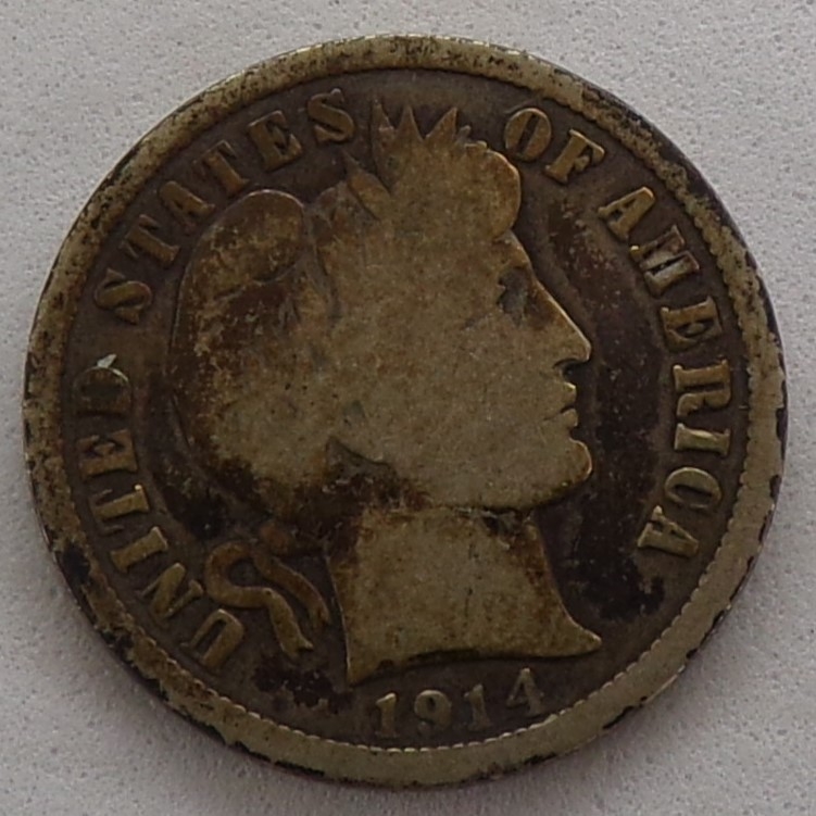 1914-D Barber Silver Dime (Partial Liberty)