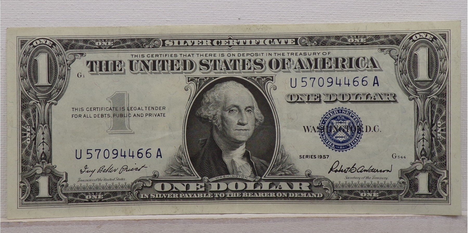 1957 $1 (One Dollar Blue Seal) Silver Certificate Nearly Uncirculated