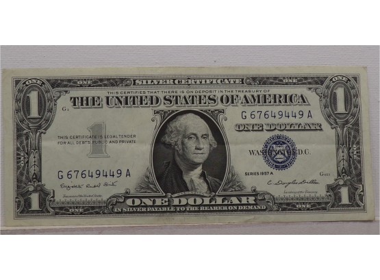 1957A $1 (One Dollar Blue Seal) Silver Certificate Lightly Circulated