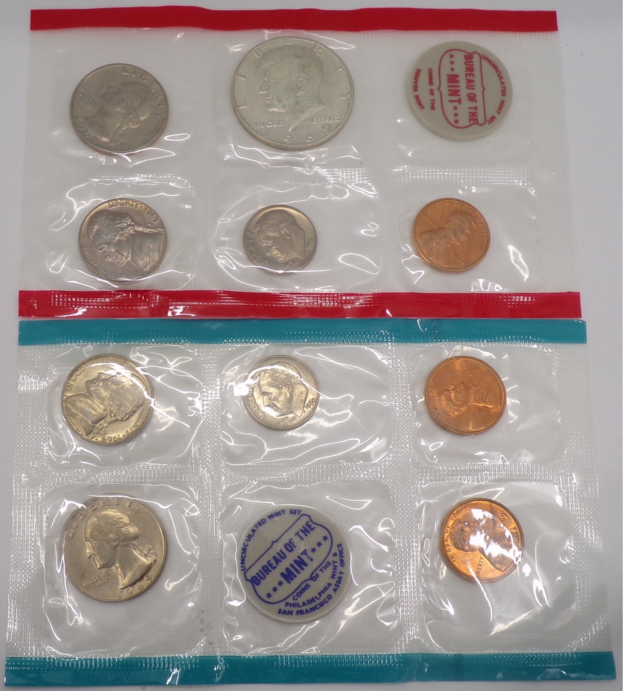 1969 P & D Mint Uncirculated Set (Silver-Clad Half & S-Mint Cent & Nickel, 2 Tokens & 10 Coins) GEM BU OGP