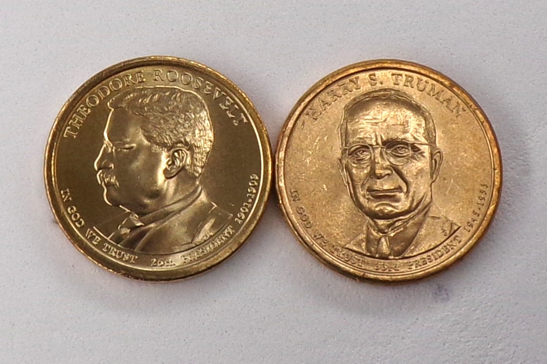 (2 BU Presidential $1), 2015-P Truman & 2013-P Roosevelt