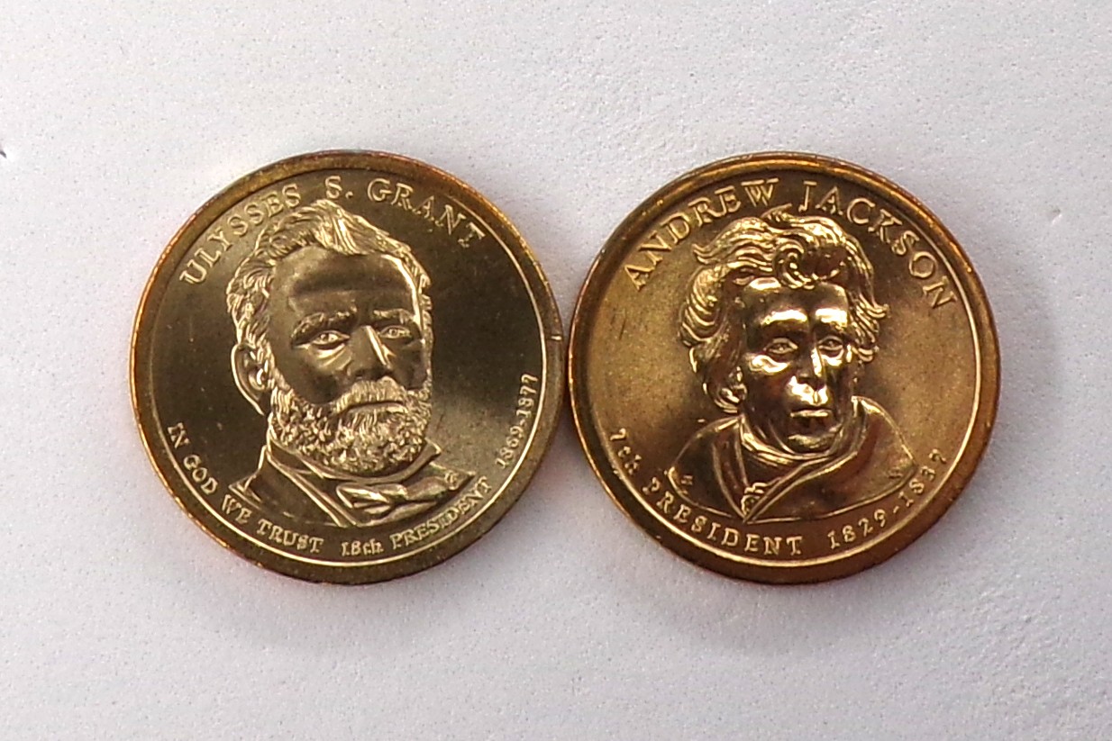(2 Gem BU Presidential $1), 2011-P Grant & 2008-P A. Jackson