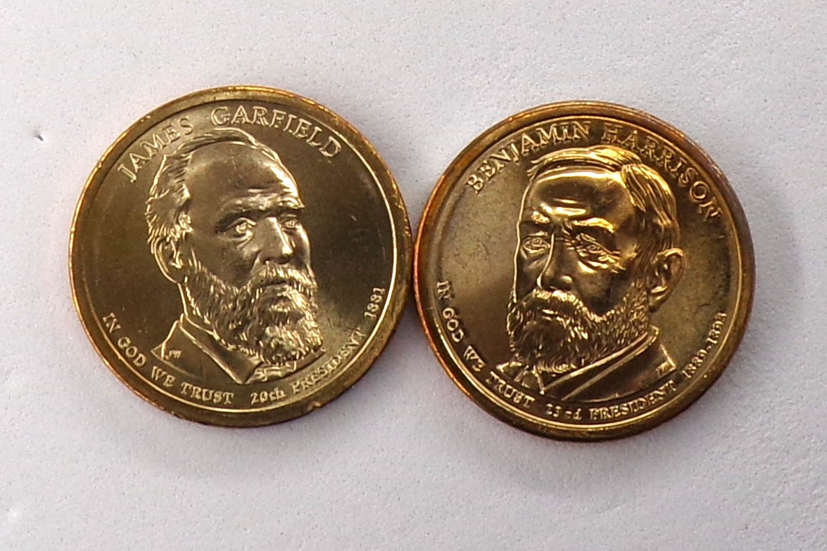 (2 Gem BU Presidential $1), 2012-D B. Harrison & 2011-P J.A. Garfield